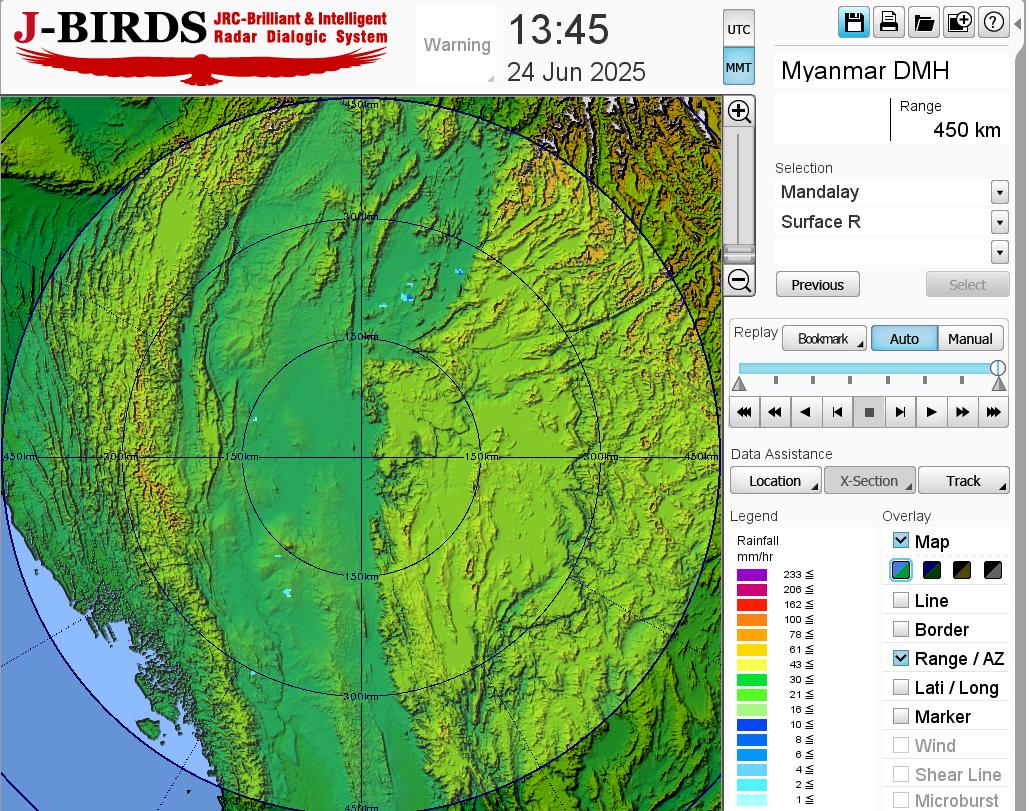 မိုးတိမ်တောင်ဖြစ်ပေါ်မှုအခြေအနေ။ စစ်ကိုင်းတိုင်းဒေသကြီးအထက်ပိုင်း၊ တနင်္သာရီတိုင်းဒေသကြီး၊ ကချင်ပြည်နယ်၊ ချင်းပြည်နယ်နှင့် ရခိုင်ပြည်နယ်တို့တွင် မိုးတိမ်တောင်များ ဖြစ်ထွန်းလျက်ရှိပြီး၊ အဆိုပါ မိုးတိမ်တောင်များ ရွေ့လျားရာ နေရာတစ်လျှောက်တွင် မိုးရွာသွန်းခြင်းနှင့်အတူ လေပြင်းတိုက်ခတ်ခြင်း၊ မိုးထစ်ချုန်းခြင်း၊ မိုးကြိုးပစ်ခြင်း၊ လျှပ်စီးလက်ခြင်းနှင့် မိုးသီးကြွေခြင်းစသည့် မိုးလေဝသဖြစ်စဉ်များ ဖြစ်ပေါ်နိုင်ပါသဖြင့် ကြိုတင်သတိပြုနိုင်ပါရန် အကြံပြုအပ်ပါသည်။