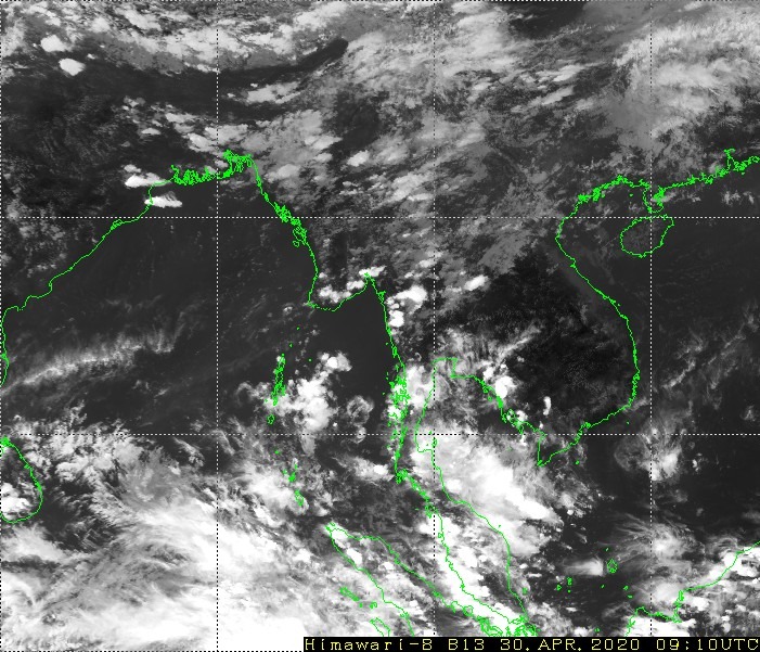 ဘင်္ဂလားပင်လယ်အော်အ‌ခြေအနေ။ ကပ္ပလီပင်လယ်ပြင်နှင့် ဘင်္ဂလားပင်လယ်အော်တောင်ပိုင်းတို့တွင် တိမ်အသင့်အတင့်မှ တိမ်ထူထပ်နေပြီး၊ ကျန်ဘင်္ဂလားပင်လယ်အော်တွင် တိမ်အနည်းငယ် ဖြစ်ထွန်းနေပါသည်။