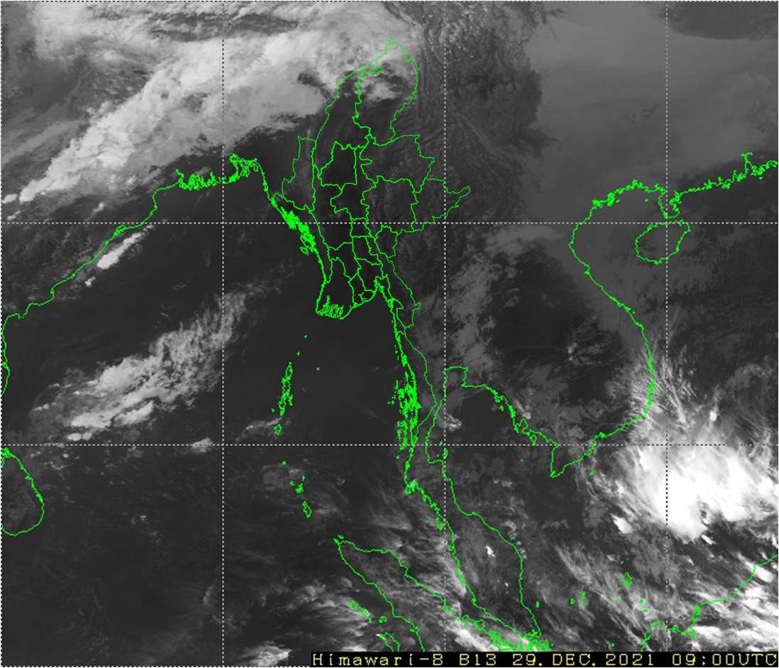 မနက်ဖြန်နံနက်အထိ ခန့်မှန်းချက်မှာ စစ်ကိုင်းတိုင်းဒေသကြီးအထက်ပိုင်း၊ တနင်္သာရီတိုင်းဒေသကြီး၊ ကချင်ပြည်နယ်နှင့် ချင်းပြည်နယ်တို့တွင် နေရာကွက်ကျား မိုးရွာနိုင်သည်။ ရွာရန်ရာနှုန်း(၆၀) ဖြစ်သည်။ ရှမ်းပြည်နယ်၊ ရခိုင်ပြည်နယ်၊ ကယားပြည်နယ်၊ ကရင်ပြည်နယ်နှင့် မွန်ပြည်နယ်တို့တွင် တိမ်အသင့်အတင့် ဖြစ်ထွန်းပြီး ကျန်တိုင်းဒေသကြီးနှင့် ပြည်နယ်တို့တွင် အများအားဖြင့် သာယာမည်။