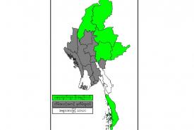 မနက်ဖြန်နံနက်အထိခန့်မှန်းချက်။ စစ်ကိုင်းတိုင်းဒေသကြီးအထက်ပိုင်း၊ တနင်္သာရီတိုင်းဒေသကြီး၊ ကချင်ပြည်နယ်နှင့် ရှမ်းပြည်နယ်တို့တွင် နေရာကွက်ကျား မိုးရွာမည်။ ရွာရန်ရာနှုန်း(၈၀) ဖြစ်ပါသည်။ ဧရာဝတီတိုင်းဒေသကြီး၊ ကရင်ပြည်နယ်နှင့် မွန်ပြည်နယ် တို့တွင် အများအားဖြင့် သာယာပြီး၊ ကျန်တိုင်းဒေသကြီးနှင့် ပြည်နယ်တို့တွင် တိမ်အသင့်အတင့်မှ တိမ်ထူထပ်မည်။