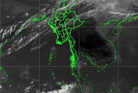 ဘင်္ဂလားပင်လယ်အော်အခြေအနေ။ ကပ္ပလီပင်လယ်ပြင်နှင့် ဘင်္ဂလားပင်လယ်အော်တို့တွင် တိမ်အနည်းငယ်မှ တိမ်အသင့်အတင့် ဖြစ်ထွန်းနေပါသည်။