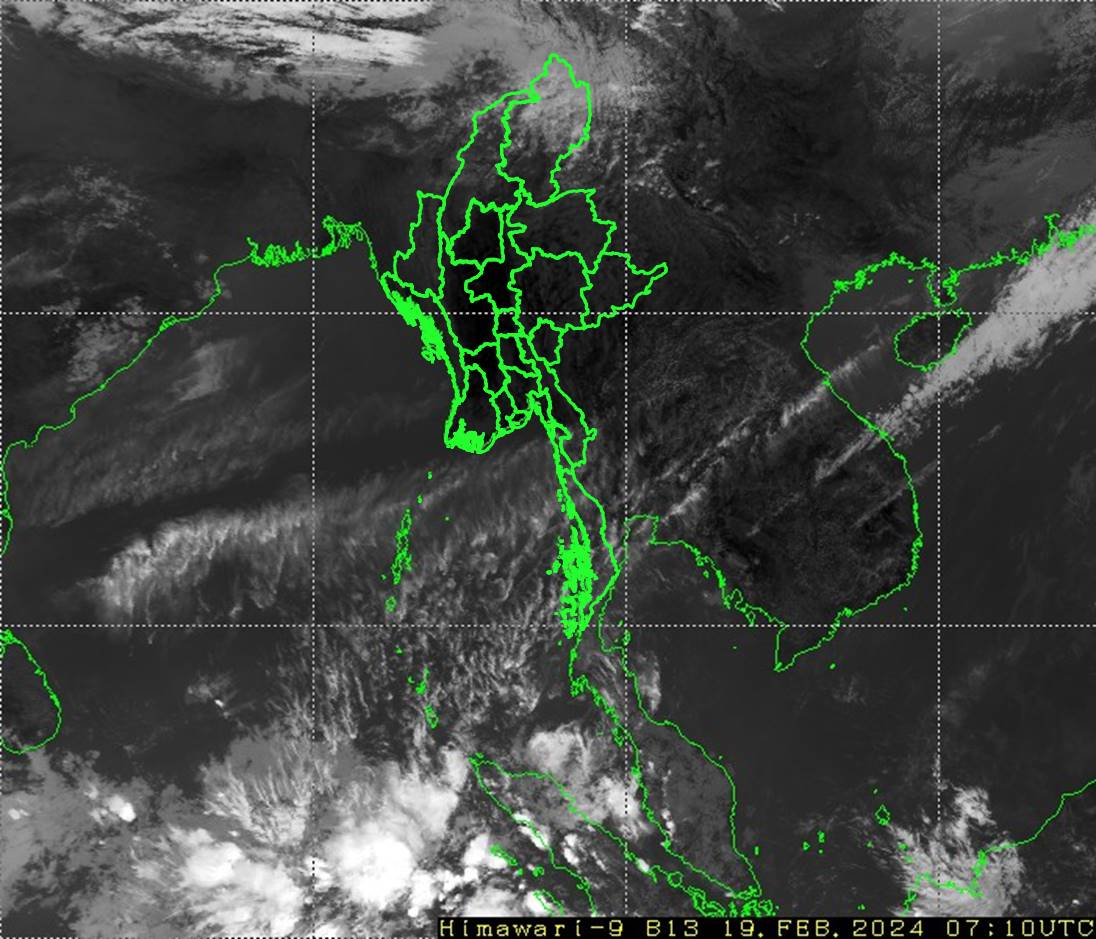 လွန်ခဲ့သော(၂၄)နာရီအတွင်းက တနင်္သာရီတိုင်းဒေသကြီးတွင် နေရာကွက်ကျား မိုးအနည်းငယ် ထစ်ချုန်းရွာခဲ့ပါသည်။ စစ်ကိုင်းတိုင်းဒေသကြီးအထက်ပိုင်း၊ ကချင်ပြည်နယ်၊ ကရင်ပြည်နယ်နှင့် မွန်ပြည်နယ်တို့တွင် တိမ်အသင့်အတင့် ဖြစ်ထွန်းခဲ့ပြီး၊ ကျန်တိုင်းဒေသကြီးနှင့် ပြည်နယ်တို့တွင် အများအားဖြင့် သာယာခဲ့ပါသည်။ ညအပူချိန်များမှာ ပဲခူးတိုင်းဒေသကြီး၊ ရန်ကုန်တိုင်းဒေသကြီး၊ ရှမ်းပြည်နယ်(တောင်ပိုင်းနှင့် အရှေ့ပိုင်း)နှင့် ချင်းပြည်နယ်တို့တွင် ဖေဖော်ဝါရီလ၏ ပျမ်းမျှအပူချိန်တို့အောက် (၃)ဒီဂရီစင်တီဂရိတ်မှ (၄)ဒီဂရီစင်တီဂရိတ်အထိနှင့် နေပြည်တော်၊ ဧရာဝတီတိုင်းဒေသကြီး၊ ရှမ်းပြည်နယ်(မြောက်ပိုင်း)၊ ရခိုင်ပြည်နယ်၊ ကယားပြည်နယ်နှင့် မွန်ပြည်နယ်တို့တွင် ဖေဖော်ဝါရီလ၏ ပျမ်းမျှအပူချိန်တို့အောက် (၂)ဒီဂရီစင်တီဂရိတ်လျော့နည်းခဲ့ပြီး၊ ကျန်တိုင်းဒေသကြီးနှင့် ပြည်နယ်တို့တွင် ဖေဖော်ဝါရီလ၏ ပျမ်းမျှအပူချိန်ခန့်သာ ရှိခဲ့ပါသည်။ ထူးခြားသည့် ညအပူချိန်များမှာ ဟားခါးမြို့တွင် (၀)ဒီဂရီစင်တီဂရိတ်၊ နမ့်စန်မြို့(ရှမ်းပြည်နယ်တောင်ပိုင်း)နှင့် လွိုင်လင်မြို့တို့တွင် (၂)ဒီဂရီစင်တီဂရိတ်စီ၊ ဟဲဟိုးမြို့တွင် (၃)ဒီဂရီစင်တီဂရိတ်နှင့် ပင်လောင်းမြို့နှင့် မိုင်းယန်းမြို့တို့တွင် (၄)ဒီဂရီစင်တီဂရိတ်စီတို့ ဖြစ်ကြပါသည်။