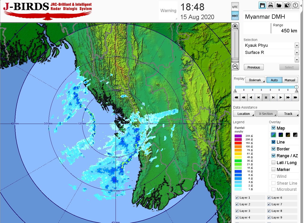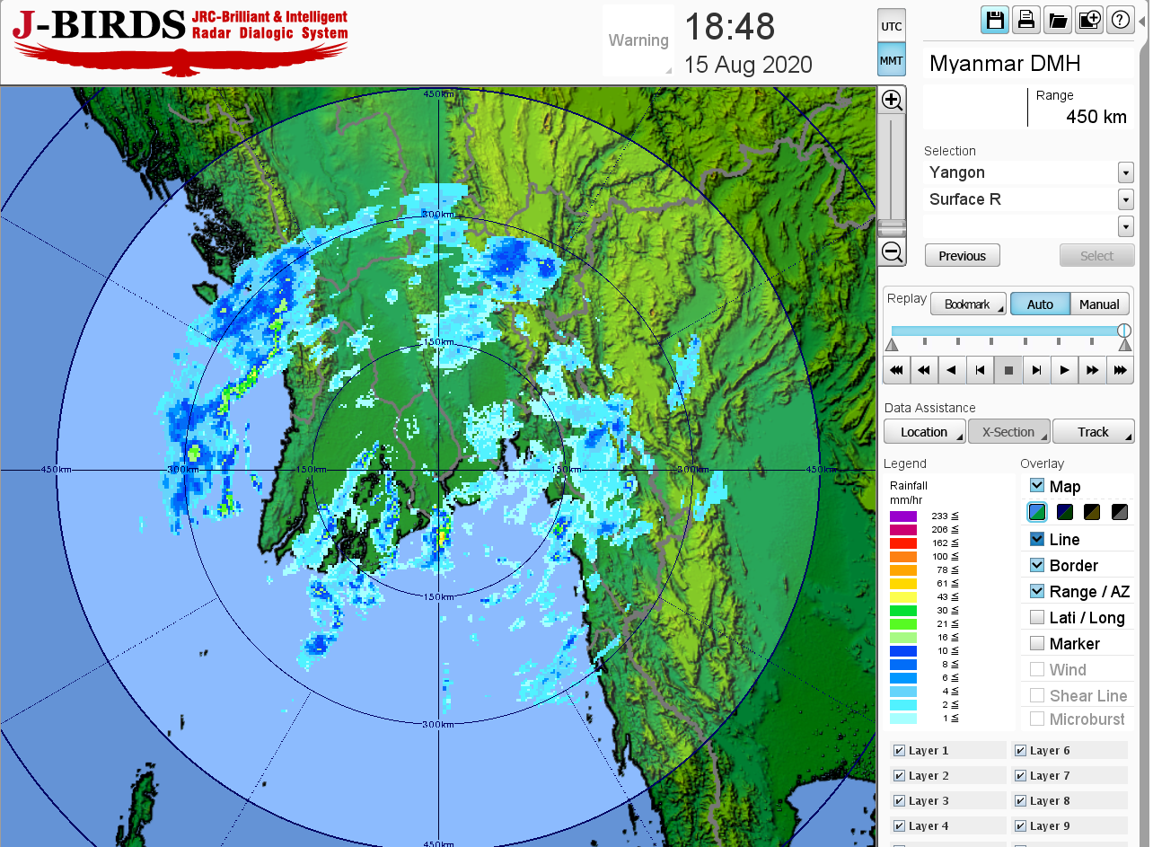 ဘင်္ဂလားပင်လယ်အော်အခြေအနေမှာ ယနေ့မြန်မာစံတော်ချိန် (၁၈:၃၀) နာရီအချိန် တိုင်းထွာချက်များအရ ယမန်နေ့က ဖြစ်ပေါ်ခဲ့သော လေဖိအားနည်းရပ်ဝန်းသည် အိန္ဒိယနိုင်ငံ၊ ဩရိဿပြည်နယ်မြောက်ပိုင်း ကမ်းခြေနှင့် အနောက်ဘင်္ဂလားပြည်နယ်တို့ကို ဝင်ရောက်ခဲ့ပြီးဖြစ်ပါသည်။ ကပ္ပလီပင်လယ်ပြင်တွင် မုတ်သုံလေ အားအသင့်အတင့်ရှိနေပြီး ဘင်္ဂလားပင်လယ်အော်တွင် မုတ်သုံလေအားကောင်းရာမှ အားအလွန်ကောင်းနေသည်။