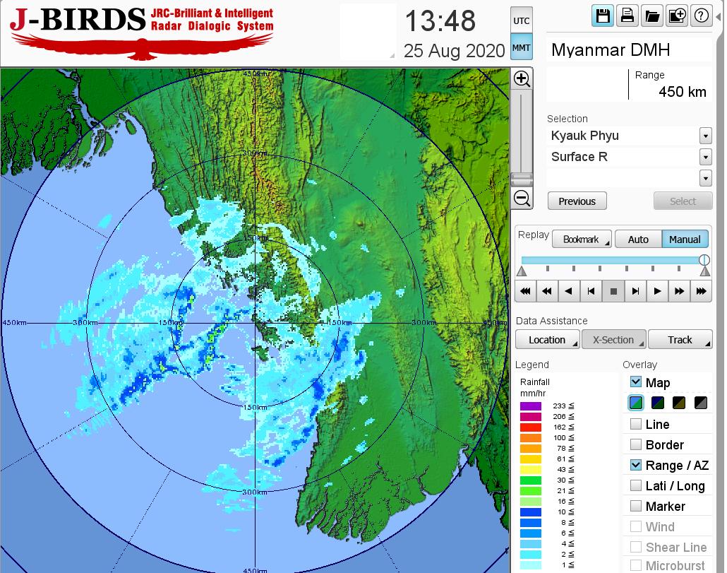 ယနေ့နံနက်(၀၉:၃၀)နာရီအချိန်ထိ မိုးလေဝသတိုင်းထွာချက်အကျဉ်းချုပ်မှာ လွန်ခဲ့သော(၂၄)နာရီအတွင်းက တနင်္သာရီတိုင်းဒေသကြီးတွင် နေရာကွက်ကျား၊ မကွေးတိုင်းဒေသကြီးတွင် နေရာကျဲကျဲ၊ စစ်ကိုင်းတိုင်းဒေသကြီး အောက်ပိုင်းနှင့် မန္တလေးတိုင်းဒေသကြီးတို့တွင် နေရာ စိပ်စိပ်နှင့် ကျန်တိုင်းဒေသကြီးနှင့် ပြည်နယ်တို့တွင် နေရာ အနှံ့အပြား မိုးထစ်ချုန်းရွာခဲ့ပြီး၊ ရခိုင်ပြည်နယ်တွင် ဒေသအလိုက် မိုးကြီးခဲ့သည်။