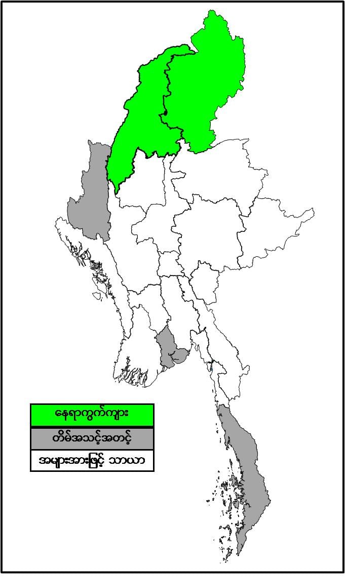 နောက်(၂)ရက်အတွက် ခန့်မှန်းချက်မှာ စစ်ကိုင်းတိုင်းဒေသကြီးအထက်ပိုင်းနှင့် ကချင်ပြည်နယ်တို့တွင် နေရာကျဲကျဲ မိုးထစ်ချုန်းရွာနိုင်သည်။