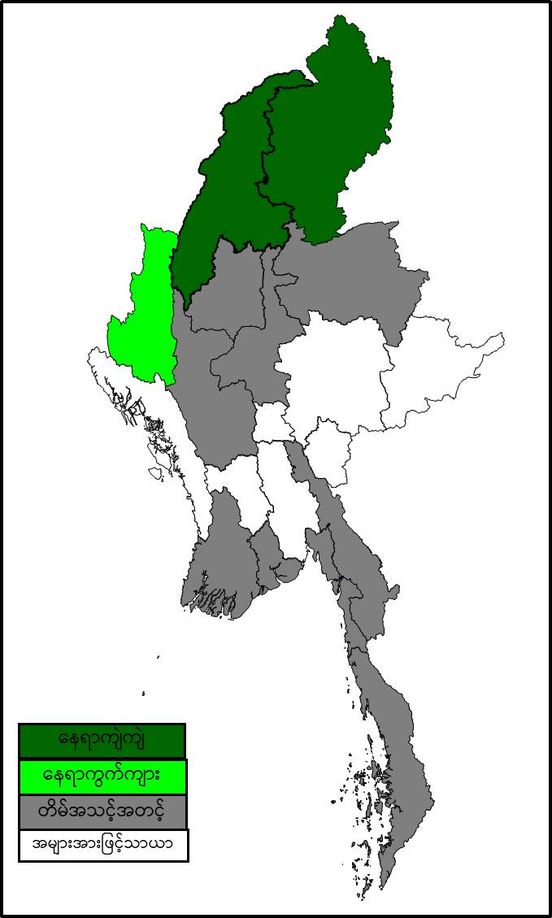 မနက်ဖြန်နံနက်အထိခန့်မှန်းချက်။ စစ်ကိုင်းတိုင်းဒေသကြီးအထက်ပိုင်းနှင့် ကချင်ပြည်နယ်တို့တွင် နေရာကျဲကျဲနှင့် ချင်းပြည်နယ်တွင် နေရာကွက်ကျား မိုးထစ်ချုန်းရွာမည်။ ရွာရန်ရာနှုန်း (၈၀) ဖြစ်ပါသည်။ နေပြည်တော်၊ ပဲခူးတိုင်းဒေသကြီး၊ ရှမ်းပြည်နယ် (တောင်ပိုင်းနှင့် အရှေ့ပိုင်း)၊ ရခိုင်ပြည်နယ်နှင့် ကယားပြည်နယ်တို့တွင် အများအားဖြင့် သာယာပြီး၊ ကျန်တိုင်းဒေသကြီးနှင့် ပြည်နယ်တို့တွင် တိမ်အသင့်အတင့် ဖြစ်ထွန်းမည်။