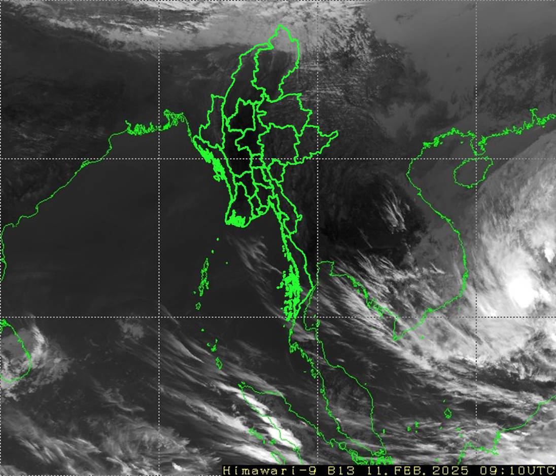 မနက်ဖြန်နံနက်အထိခန့်မှန်းချက်။ ကချင်ပြည်နယ်တွင် နေရာကျဲကျဲနှင့် စစ်ကိုင်းတိုင်းဒေသကြီးအထက်ပိုင်းတွင် နေရာကွက်ကျား မိုးအနည်းငယ် ထစ်ချုန်းရွာမည်။ ရွာရန်ရာနှုန်း ၈၀ ဖြစ်ပါသည်။ ဧရာဝတီတိုင်းဒေသကြီး၊ တနင်္သာရီတိုင်းဒေသကြီး၊ ကရင်ပြည်နယ်၊ မွန်ပြည်နယ်နှင့် ရှမ်းပြည်နယ်(အရှေ့ပိုင်း)တို့တွင် တိမ်အသင့်အတင့် ဖြစ်ထွန်းပြီး၊ ကျန်တိုင်းဒေသကြီးနှင့် ပြည်နယ်တို့တွင် အများအားဖြင့် သာယာမည်။