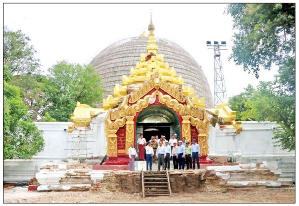 ထို့နောက် စစ်ကိုင်းတောင်ရိုးရှိ ဆွမ်းဦးပုညရှင် စေတီတော်မြတ်ကြီး အာရုံခံတန်ဆောင်းများနှင့် သာသနိကအဆောက်အအုံများ ပြုပြင်မွမ်းမံ ဆောင်ရွက်နေမှု၊ ပုညရှင်သာသနာ့ဗိမာန်တော်ကြီး ပြန်လည်ပြုပြင်နေမှုနှင့် တပ်မတော်သားများက ပြိုကျပျက်စီးခဲ့သည့် သာသနိကအဆောက်အအုံ များ ရှင်းလင်းဖယ်ရှားနေမှုများကို ကြည့်ရှုစစ်ဆေးသည်။