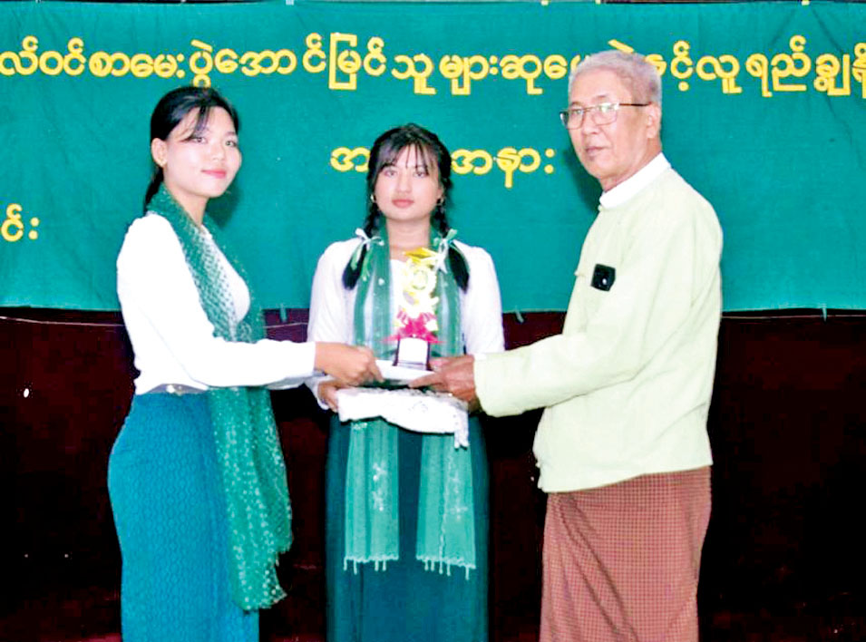 ဆက်လက်၍ မြို့နယ်စီမံခန့်ခွဲရေးနှင့် အုပ်ချုပ်ရေးကော်မတီ ဥက္ကဋ္ဌနှင့် အဖွဲ့ဝင်များ၊ မြို့နယ် ပညာရေးမှူးနှင့် တာဝန်ရှိသူများ က ၂၀၂၄- ၂၀၂၅ ပညာသင်နှစ် တက္ကသိုလ်ဝင်တန်း အောင်မြင် သည့် ကျောင်းသား ကျောင်းသူများအား ဆုများချီးမြှင့်ခဲ့ကြပြီး Grade-12 လူရည်ချွန်ဆုရရှိသည့် မထက်ထက်အောင်အား ဂုဏ်ပြုဆုငွေများ ပေးအပ်ချီးမြှင့်ခဲ့ကြောင်း သိရသည်။
