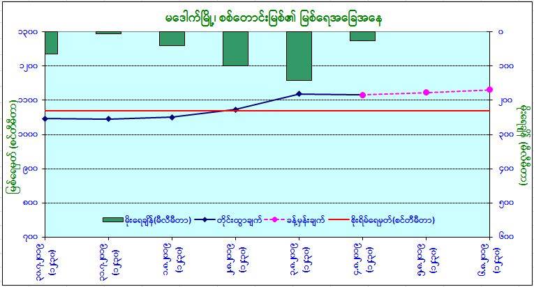 မိုးလေဝသနှင့် ဇလဗေဒညွှန်ကြားမှုဦးစီးဌာနမှ ယနေ့ မွန်းလွဲ ၂ နာရီခွဲတွင် တိုင်းတာရရှိသော မြစ်ရေအခြေအနေမှာ စစ်တောင်းမြစ်ရေသည် မဒေါက်မြို့တွင် ယင်းမြို့၏ စိုးရိမ်ရေမှတ်ထက် ကျော်လွန်လျက်ရှိကြောင်း သိရသည်။