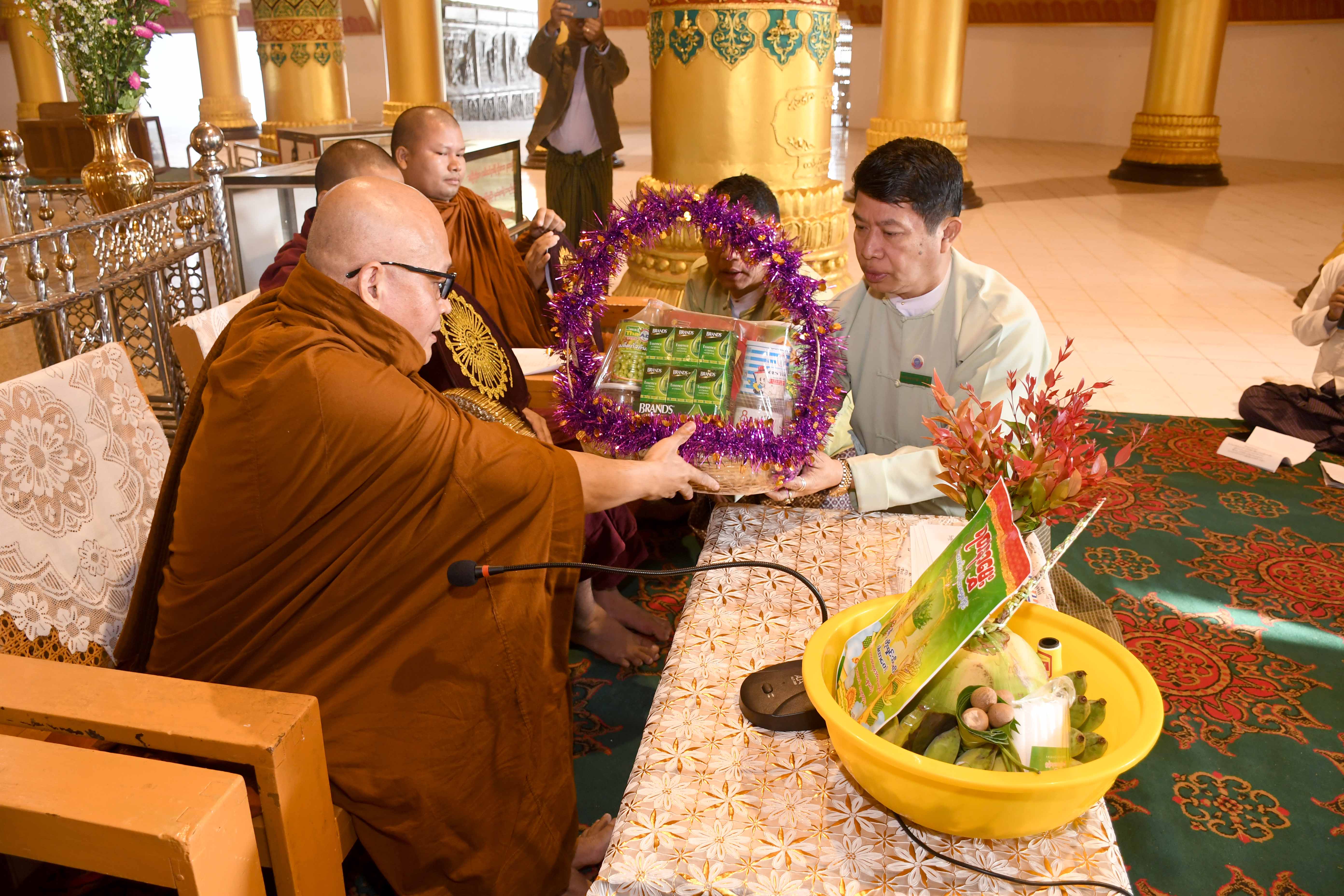 ယင်းနောက် ပြည်နယ်အစိုးရအဖွဲ့အတွင်းရေးမှူးနှင့် ဌာနဆိုင်ရာအကြီးအကဲများက ဆရာတော် သံဃာတော်များအား လှူဖွယ်ဝတ္ထုပစ္စည်းများ ဆက်ကပ်လှူဒါန်းခဲ့ကြကြောင်း သိရသည်။
