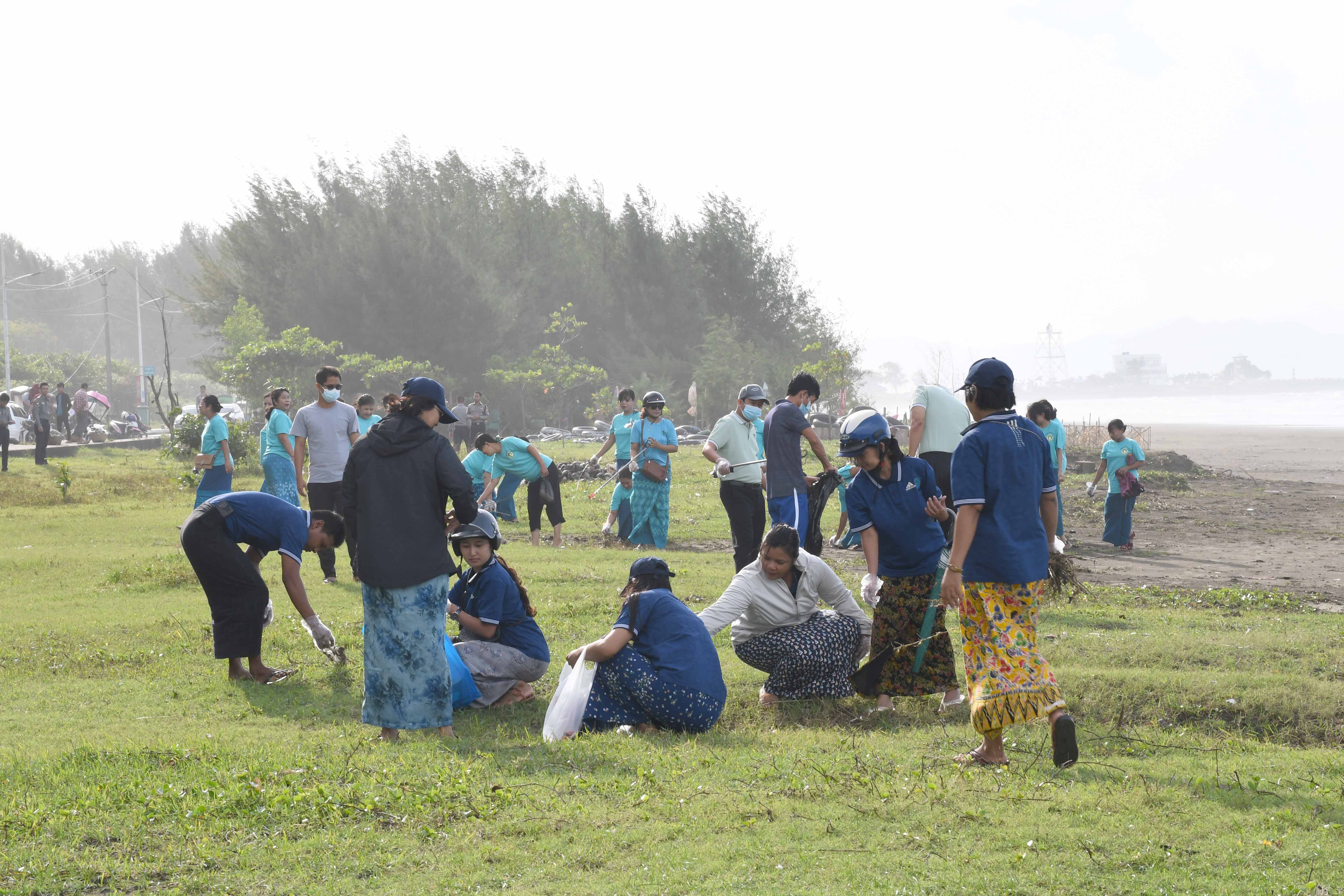 ထိုသို့ စုပေါင်းသန့်ရှင်းရေးဆောင်ရွက်ရာတွင် စစ်တွေတပ်နယ်ရှိ တပ်ရင်း၊ တပ်ဖွဲ့များမှ တပ်မတော်သားများ၊ ရဲတပ်ဖွဲ့ဝင်များ၊ ဌာနဆိုင်ရာများ၊ ရပ်ကွက်အုပ်ချုပ်ရေးမှူးများနှင့် ဒေသခံပြည်သူများက စစ်တွေမြို့ စစ်တွေမြို့ ကမ်းနားလမ်း၊ စာတိုက်ကြီးအနီးမှစတင်ကာ ကမ်းနားလမ်းတလျောက်၊ စစ်တွေပွိုင့်နှင့် ပွိုင့်ကမ်းခြေ၊ စစ်တွေ ဟိုတယ်ကမ်းခြေတို့တွင် လမ်းဘေးဝဲယာရှိ စွန့်ပစ်အမှိုက်များ၊ ပလပ်စတိတ်အိပ်များ၊ ကမ်းခြေအနီးရှိ စွန့်ပစ်အမှိုက်ကို မြို့သန့်ရှင်းသာယာလှပရေးစေရေးအတွက် စုပေါင်းအမှိုက်ကောက် သန့်ရှင်းရေး ဆောင်ရွက်ခဲ့ကြကြောင်း သိရသည်။