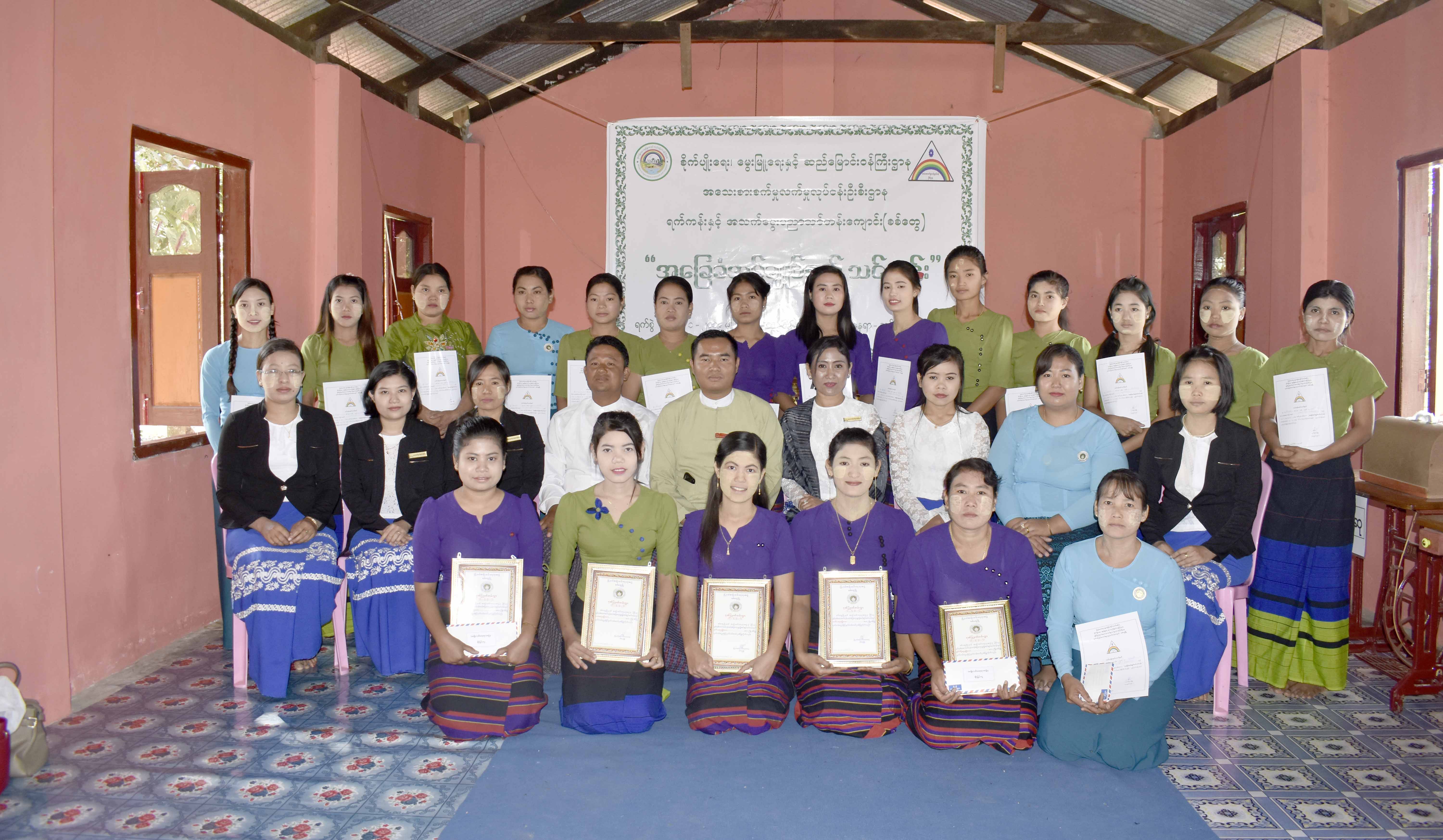သင်တန်း၌ ဆုရရှိသူများအား ရက်ကန်းနှင့် အသက်မွေး ပညာသင်တန်းကျောင်းမှ အပ်ချုပ်စက် တစ်လုံးစီ ပေးအပ်ချီးမြှင့်ခဲ့ကြောင်း သိရသည်။