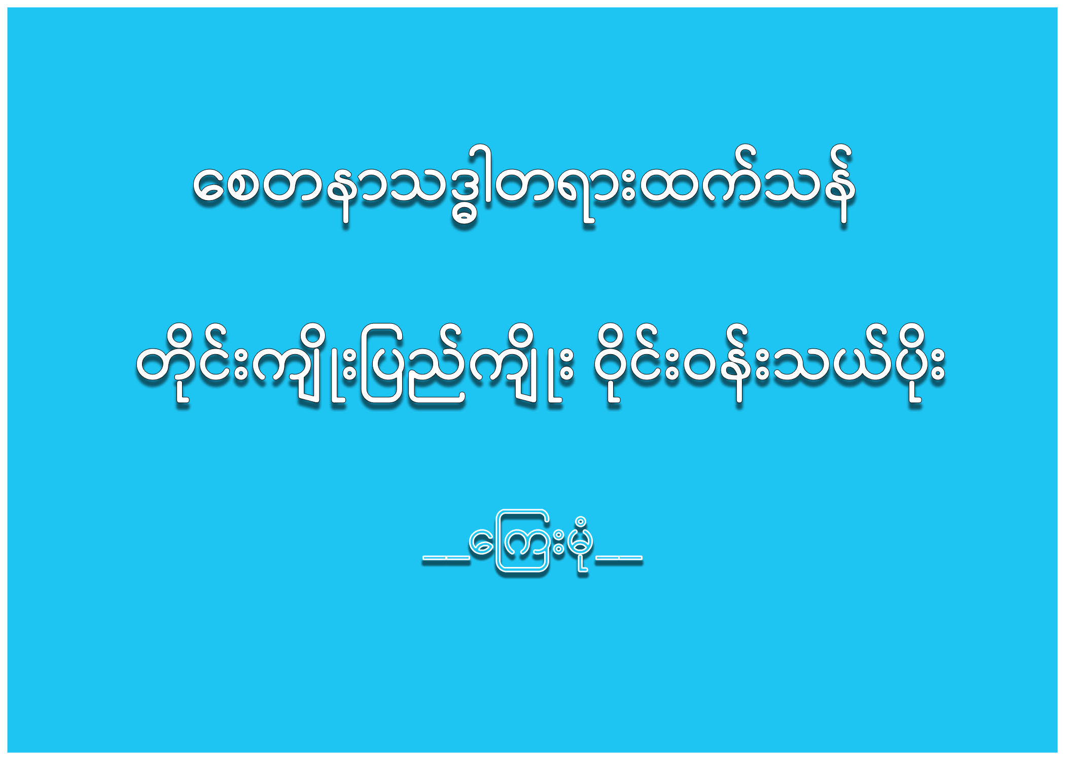 သို့ဖြစ်ရာ ပြည်သူများ သဘာဝဘေးအန္တရာယ်နှင့်ကြုံတွေ့ပြီး ဒုက္ခအခက်အခဲများ ကြုံတွေ့ချိန်တွင် ဖြူစင်သန့်ရှင်းသော စေတနာသဒ္ဓါတရားဖြင့် တက်ညီလက်ညီ ဝိုင်းဝန်းကူညီဆောင်ရွက်ပေးကြပါသော စေတနာရှင်များ၊ အလှူရှင်များအားလုံးကို ဂုဏ်ပြုကျေးဇူးတင်ရမည်ဖြစ်သည်။ ရှေ့ဆက်၍လည်း တိုင်းပြည်အတွက် လိုအပ်ချက်များရှိလာသည့်အခါတွင် ကောင်းမြတ်သောစိတ်ထားများဖြင့် ဆက်လက် ဝိုင်းဝန်း ကူညီဆောင်ရွက်ပေးကြပါရန်နှင့် နိုင်ငံတော်၏ ရှေ့လုပ်ငန်းစဉ်(၅)ရပ် အောင်မြင်ပြီးမြောက်ရေးတွင်လည်း တစ်တပ်တစ်အား ဝိုင်းဝန်းပါဝင်ကူညီ ဆောင်ရွက်ကြပါရန် တိုက်တွန်းအပ်ပါကြောင်း။