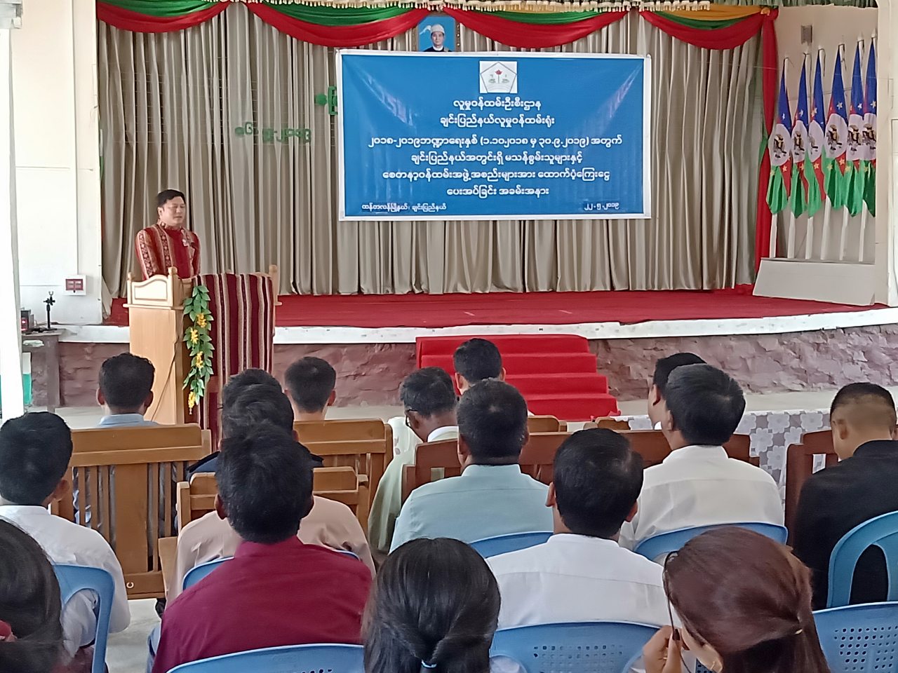 ချင်းပြည်နယ် လူမှုဝန်ထမ်းဦးစီးဌာနမှ ကျင်းပသည့် စေတနာ့ဝန်ထမ်း အဖွဲ့အစည်းများနှင့် မသန်စွမ်းသူများ ထောက်ပံ့ကြေးငွေ ပေးအပ်ပွဲအခမ်းအနားကို ယနေ့ နံနက် ၁ဝ နာရီက ထန်တလန်မြို့၊ မြို့နယ်ခန်းမ၌ ကျင်းပခဲ့သည်။