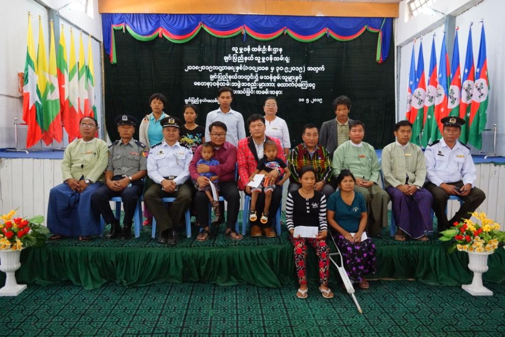 ထို့နောက် စေတနာ့ဝန်ထမ်း အဖွဲ့အစည်းများ၊ မသန်စွမ်းသူများ၊ ကိုယ်ဝန်ဆောင်မိခင်များနှင့် ၎င်းတို့မှ မွေးဖွားလာသော အသက်(၂)နှစ်အောက် ကလေးများအား လူမှုရေးဝန်ကြီးက ထောက်ပံ့ငွေပေးအပ်ပြီး ပြည်နယ် လွှတ်တော်ကိုယ်စားလှယ် ဦးရာလ်နှင်က ကျေးဇူးတင်စကားပြန်လည်ပြောကြားသည်။