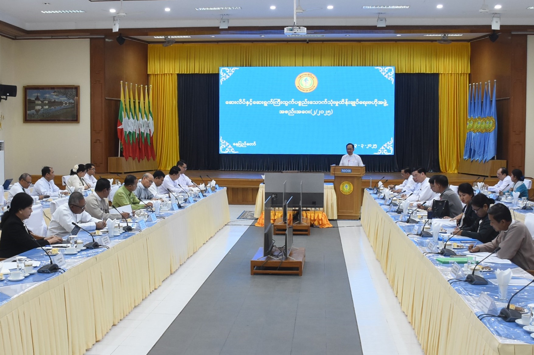ဆေးလိပ်နှင့်ဆေးရွက်ကြီးထွက်ပစ္စည်း သောက်သုံးမှုထိန်းချုပ်ရေးဗဟိုအဖွဲ့ အစည်းအဝေး (၂/၂၀၂၅) ကို ယနေ့နံနက် ၉ နာရီတွင် ကျန်းမာရေးဝန်ကြီးဌာန၊ ရုံးအမှတ်(၄)၊ Meeting Hall ၌ ကျင်းပသည်။
