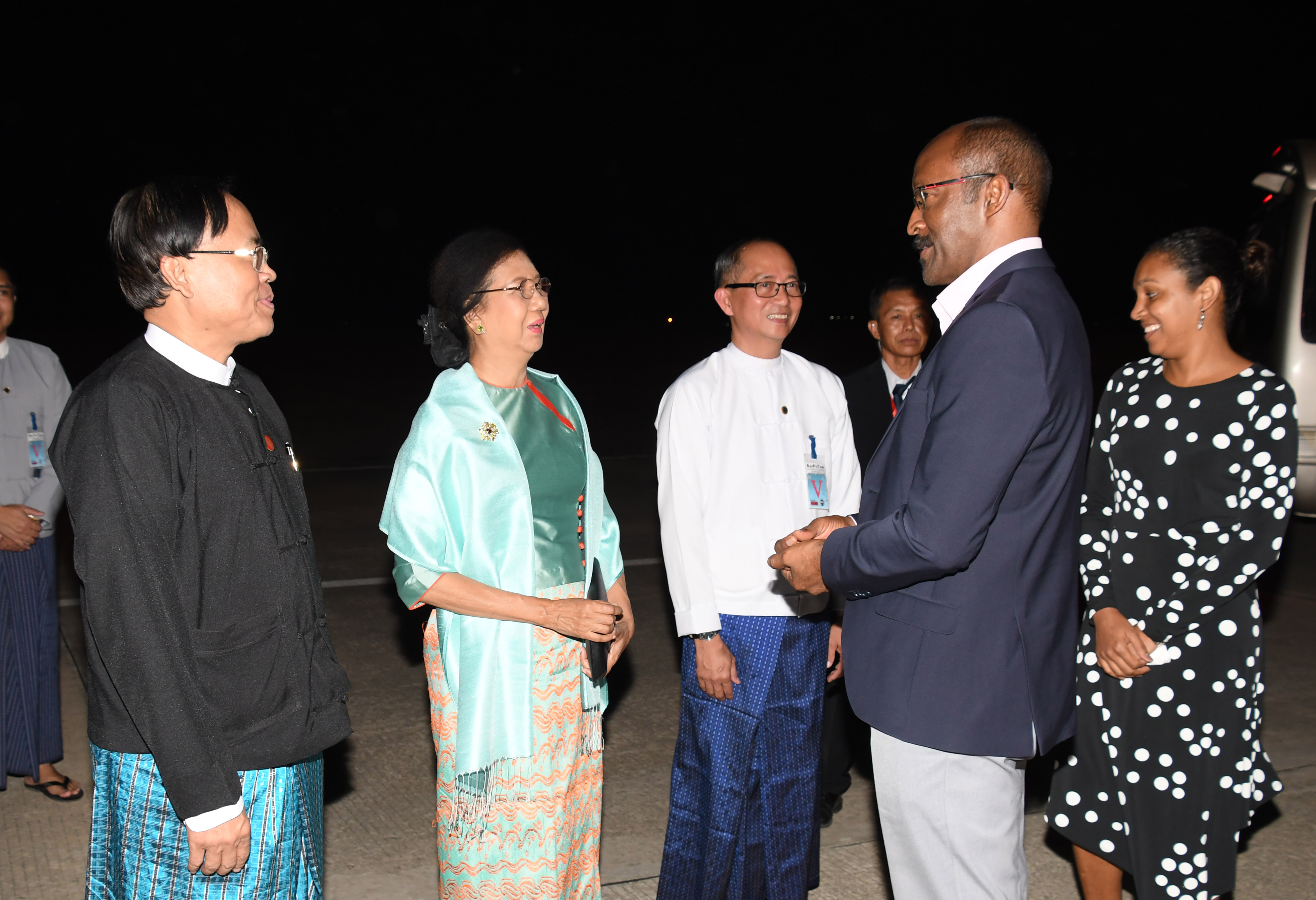 ဆေးရှဲလ်နိုင်ငံ ဒုတိယသမ္မတနှင့်ဇနီး ဦးဆောင်သည့် ကိုယ်စားလှယ်အဖွဲ့အား အပြည်ပြည်ဆိုင်ရာ ပူးပေါင်းဆောင်ရွက်ရေးဝန်ကြီးဌာန ပြည်ထောင်စုဝန်ကြီး ဦးကျော်တင်နှင့်ဇနီး၊ နိုင်ငံခြားရေးဝန်ကြီးဌာနမှ အဆင့်မြင့်အရာရှိကြီးများနှင့် တာဝန်ရှိသူများက နေပြည်တော် အပြည်ပြည်ဆိုင်ရာလေဆိပ်၌ ပို့ဆောင်နှုတ်ဆက်ကြသည်။