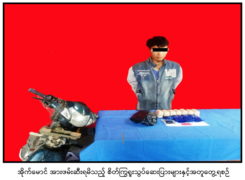 အလားတူယင်းနေ့နံနက် ၁၁ နာရီခန့်က တပ်မတော်မှ မဘိမ်းမြို့နယ်၊ မအူကုန်းကျေးရွာ အုပ်စု၊ အလယ်ရွာကျေးရွာအနီး တောလမ်းဘေးတွင် တွေ့ရှိသူ အိုက်မောင် အားရှာဖွေရာ စိတ်ကြွရူးသွပ် ဆေးပြား ၁၉,၅၀၀၊ လက်ကိုင်ဖုန်းတစ်လုံးနှင့် မော်တော်ဆိုင်ကယ်တစ်စီးတို့ကို သိမ်းဆည်း ရမိခဲ့သဖြင့် ၎င်းတို့အား မူးယစ်ဆေးဝါးနှင့် စိတ်ကိုပြောင်းလဲစေသောဆေးဝါးများဆိုင်ရာ ဥပဒေအရ အရေးယူထားကြောင်း သိရသည်။