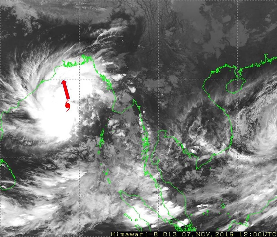 မိုးလေဝသနှင့်ဇလဗေဒညွှန်ကြားမှုဦးစီးဌာနမှ ယနေ့ ည ၇ နာရီ ထုတ်ပြန်ချက်အရ ဘင်္ဂလားပင်လယ်အော် အရှေ့အလယ်ပိုင်းတွင်ဖြစ်ပေါ်နေသော ဆိုင်ကလုန်းမုန်တိုင်း (Cyclonic Storm) "ဘာဘ်ဘယ်" (BULBUL)သည် အနောက်မြောက် ဘက်သို့ ရွှေ့လျားခဲ့ပြီး အိန္ဒိယနိုင်ငံ ပါရာဒစ်ပ်မြို့ (Paradip) (ဩရိဿ-Odisha)၏ တောင်-အရှေ့ တောင်ဘက် ရေမိုင် (၃၀၀)ခန့်၊ စာဂါကျွန်း(Saga Island) (အနောက်ဘင်္ဂလားပြည်နယ်-West Bengal)၏ တောင်-အရှေ့တောင်ဘက် ရေမိုင်(၃၇၀)မိုင်ခန့်၊ ဘင်္ဂလားဒေ့ရှ်နိုင်ငံ၊ ခီပူပါရာမြို့ (Khepupara)၏ တောင်-အနောက်တောင်ဘက် ရေမိုင်(၄၀၀)မိုင်ခန့်၊ မြန်မာနိုင်ငံ၊ စစ်တွေမြို့(Sittwe)၏ အနောက်တောင်ဘက် ရေမိုင်(၃၈၀)မိုင်ခန့်နှင့် မောင်တောမြို့ (Maungdaw) ၏ အနောက်တောင်ဘက် ရေမိုင်(၃၉၀) မိုင်ခန့်အကွာ ပင်လယ်ပြင်ကို ဗဟိုပြုနေပါသည်။ ကပ္ပလီပင်လယ်ပြင် နှင့် ဘင်္ဂလားပင်လယ်အော်တို့တွင် တိမ်အသင့်အတင့်မှ တိမ်ထူထပ်နေသည်။