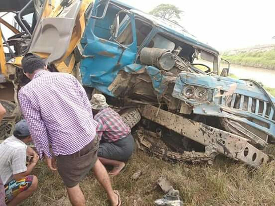 ရန်ကုန်မြောက်ပိုင်းခရိုင် လှည်းကူးမြို့နယ် ဆားတလင်း-ဒါးပိန်လမ်း မိုင်တိုင်အမှတ်(၆)ဖာလုံ အရောက်တွင် မေ ၁၀ ရက် မွန်းလွဲ ၃ နာရီခန့်က ယာဉ်နှစ်စီး မျက်နှာချင်းဆိုင်တိုက်မှုဖြစ်ပွားကြောင်း သိရသည်။