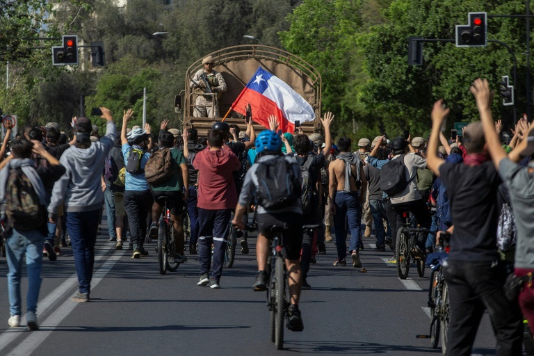 ချီလီစစ်ခေါင်းဆောင် ပီနိုချေးလက်ထက် ၁၉၇၃- ၁၉၉၀ အတွင်းမှာ ဆန္ဒပြသူတွေကို နှိမ်နင်းရန် စစ်သားတွေ  လမ်းမတွေပေါ် စေလွှတ်ခဲ့ပြီးနောက်  ပြီးခဲ့တဲ့ တနင်္ဂနွေနေ့က စစ်သားတွေကို ပထမဦးဆုံးအကြိမ်အဖြစ် လမ်းမပေါ် စေလွှတ်ခဲ့ကြောင်း သမ္မတ ပင်နီယာ ဝန်ခံပြောကြားပါတယ်။ အကြမ်းဖက်မှုတွေပါဝင်တဲ့ ဆန္ဒပြပွဲတွေကြောင့် ဆန်တီယာဂို အပါအဝင် ချီလီနိုင်ငံရဲ့ ဒေသ ၁၆ ခုမှာ အရေးပေါ်အခြေအနေ ပြဌာန်းပါတယ်။