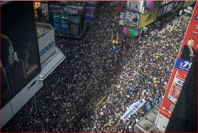 ဟောင်ကောင်ပြည်သူများသည် အငြင်းပွားဖွယ် ဥပဒေကြမ်းနှင့်ပတ်သက်ပြီး ပေကျင်းရှိ ကိုယ်စားလှယ်ရုံးတွင် အကြီးအကျယ် ဆန္ဒပြခဲ့ကြသည်။