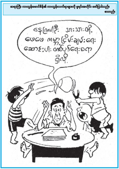 ဆရာကြီး ကာတွန်းမောင်စိန်၏ ကာတွန်းလက်ရာများကို မူရင်းအတိုင်း ဖော်ပြပါသည်။