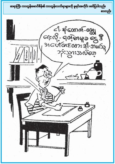 ဆရာကြီး ကာတွန်းမောင်စိန်၏ ကာတွန်းလက်ရာများကို မူရင်းအတိုင်း ဖော်ပြပါသည်။