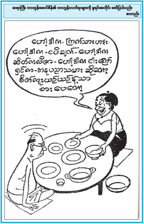 ဆရာကြီး ကာတွန်းမောင်စိန်၏ ကာတွန်းလက်ရာများကို မူရင်းအတိုင်း ဖော်ပြပါသည်။