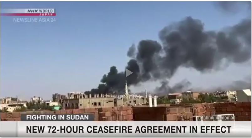 ဆူဒန်နိုင်ငံတွင် စစ်တပ်နှင့် Rapid Support Forces ( RSF )ဟု လူသိများသော လက်နက်ကိုင်အဖွဲ့တစ်ဖွဲ့တို့သည် ဧပြီ ၂၅ ရက်မှစတင်ကာ ၇၂ နာရီကြာ အပစ်အခတ်ရပ်စဲရေး သဘောတူညီမှုရရှိခဲ့သည်ဟု သိရသည်။