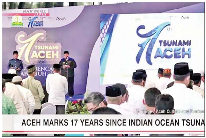 အိန္ဒိယသမုဒ္ဒရာတွင် စတင်ဖြစ်ပွားခဲ့သော ဆူနာမီမုန်တိုင်း အင်ဒိုနီးရှားနိုင်ငံ အာချေးပြည်နယ်သို့ ဝင်ရောက် တိုက်ခတ်ခြင်း ၁၇ နှစ်ပြည့် အောက်မေ့ဖွယ် အခမ်းအနားကို အင်ဒိုနီးရှားနိုင်ငံ အာချေးပြည်နယ်၌ ယနေ့ကျင်းပသည်။