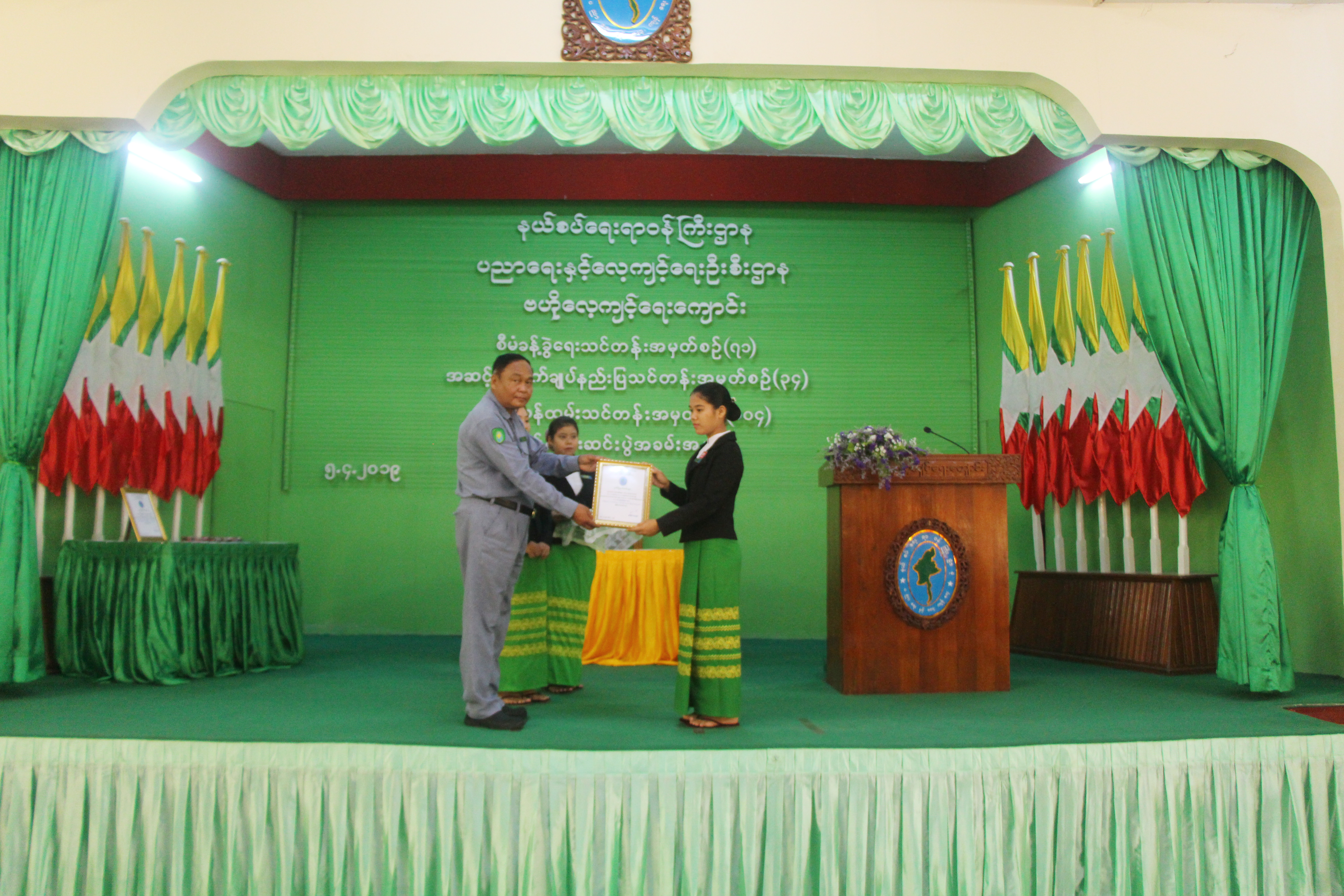 နယ်စပ်ရေးရာဝန်ကြီးဌာန၊ ပညာရေးနှင့်လေ့ကျင့်ရေးဦးစီးဌာန၊ ဗဟိုလေ့ကျင့်ရေးကျောင်းတွင် ဖွင့်လှစ်ခဲ့သည့် ဝန်ထမ်းများလုပ်ငန်း စွမ်းဆောင်ရည်မြှင့်တင်ရေး သင်တန်းများဖြစ်သည့် စီမံခန့်ခွဲရေး သင်တန်းအမှတ်စဉ်(၇၁)၊ အဆင့်မြင့်စက်ချုပ်နည်းပြသင်တန်းအမှတ်စဉ်(၃၄)၊ စာရေး ဝန်ထမ်းသင်တန်း အမှတ်စဉ်(၁၀၄)သင်တန်းများ ဆင်းပွဲအခမ်းအနားကို နယ်စပ်ဒေသနှင့် တိုင်းရင်းသားလူမျိုးများ ဖွံ့ဖြိုးတိုးတက်ရေးဦးစီးဌာန၊ ပညာရေးနှင့်လေ့ကျင့်ရေးဦးစီးဌာန၊ ကျေးလက်ဒေသဖွံ့ဖြိုး တိုးတက်ရေးဦးစီးဌာနတို့မှသင်တန်းသား၊ သင်တန်းသူစုစုပေါင်း (၁၄၀)ဦးဖြင့် ဖွင့်လှစ်လေ့ကျင့် သင်ကြားပေးခဲ့သည်။