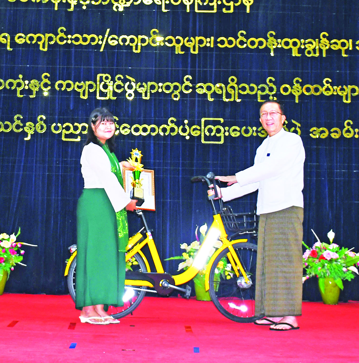 ဦးစွာ ဒုတိယဝန်ကြီးချုပ်နှင့် ပြည်ထောင်စုဝန်ကြီး ဦးဝင်းရှိန်က နိုင်ငံတော်အစိုးရအနေဖြင့် အမျိုးသားပညာရည်မြင့်မားရေးနှင့် လူ့စွမ်းအား အရင်းအမြစ် ဖွံ့ဖြိုးတိုးတက်ရေးအစီအစဉ်များ ကို ချမှတ်ဆောင်ရွက်လျက်ရှိကြောင်း၊ အနာဂတ် နိုင်ငံတော်ဖွံ့ဖြိုးတိုးတက်ရေးအတွက် ယနေ့လူငယ် များသည် နောင်တစ်ချိန်တွင် နိုင်ငံ့တာဝန်များကို ပခုံးပြောင်းတာဝန်ယူ ဆောင်ရွက်သွားကြရမည့် သူများဖြစ်ကြောင်း၊ ခေတ်မီဖွံ့ဖြိုးတိုးတက်သည့် နိုင်ငံတည်ဆောက်ရာတွင် ရုပ်ပိုင်းဆိုင်ရာဖွံ့ဖြိုး တိုးတက်မှုနှင့်အတူ အသိပညာဗဟုသုတ မြင့်မားပြီး စိတ်ပိုင်းဆိုင်ရာ ဖွံ့ဖြိုးတိုးတက်ရေးသည်လည်း အရေးကြီးကြောင်း၊ နည်းပညာသစ်များဖြင့် စိန်ခေါ်မှု၊ ပြိုင်ဆိုင်မှုများပြားသည့် ယနေ့ကမ္ဘာကြီးတွင် သားငယ်၊ သမီးငယ်များအနေဖြင့် အချိန်ကိုအကျိုးရှိစွာ အသုံးချ၍ အစဉ်ကြိုးစားသင်ယူသွားကြရန် တိုက်တွန်းလိုကြောင်း၊ တစ်ချိန်တွင် နိုင်ငံတော်အတွက် အားထားရသည့် လူငယ်များဖြစ်အောင် ကြိုးစားသွားကြမည်ဟု ယုံကြည်မျှော်လင့်ပါကြောင်း ပြောကြားသည်။