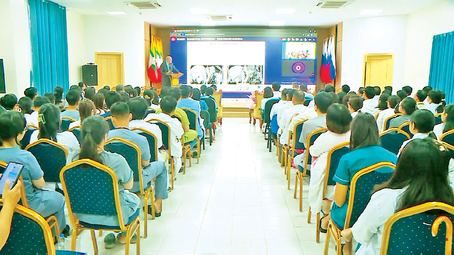 ထို့နောက် Professor Dr. Moiseyenko က “Why We Cannot Cure Cancer : The Role of Chemotherapy and Immunotherapy in Solid Tumors” ခေါင်းစဉ်ဖြင့် လည်း ကောင်း၊ Dr. Tatiana Sharabura က “Stereotactic Body Radio- therapy” ခေါင်းစဉ်ကို Video Conferencing ဖြင့်လည်းကောင်း ဆေးပညာ နှီးနှောဖလှယ်ပွဲကို ကျင်းပပြုလုပ်ရာ ပါမောက္ခချုပ် ဒေါက်တာ ကျော်ရွှေ၊ ဆေး တက္ကသိုလ် - ၁ (ရန်ကုန်) ပါမောက္ခချုပ် ဒေါက်တာ ခင်အောင်ထွန်း၊ တပ်မတော် ဆေးတက္ကသိုလ်နှင့် ပါမောက္ခ(ဌာနကြီးမှူး) ပါမောက္ခ ဒေါက်တာ မင်းဇော်ဦးနှင့် တက်ရောက်လာသူများက ပြန်လည် ရှင်းလင်းဆွေးနွေးကြသည်။