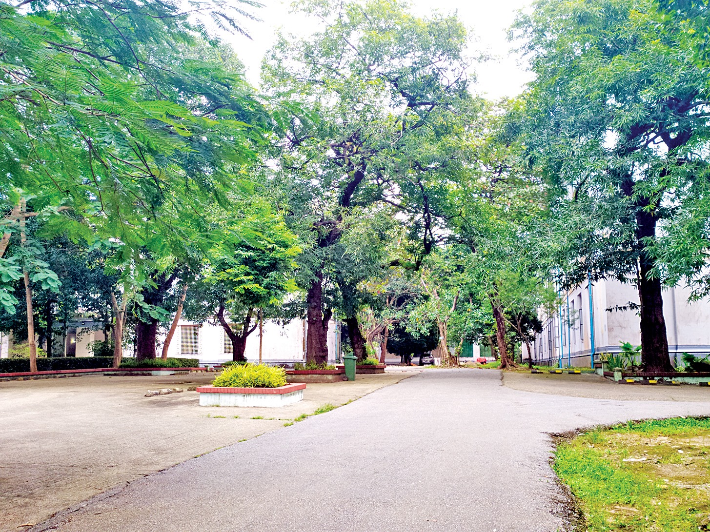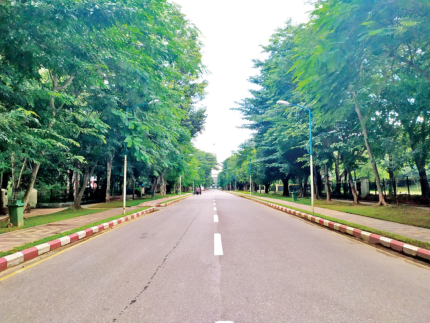 စိန်ပန်းပင်များသည် ရန်ကုန်တက္ကသိုလ်၏ အဓိပတိလမ်းမ၏ ဘေးတစ်ဖက်တစ်ချက်စီတွင် ပေါက်ရောက်နေကြသည်။ စိန်ပန်းပင်များသည် အရွယ်အနိမ့်၊ အမြင့် မညီညာကြသော်လည်း သူ့ရာသီ အချိန်အခါ ရောက်လျှင် ပင်ပျို၊ ပင်အိုမကျန် အပင်အားလုံးသည် ရဲရဲနီသော ပွင့်ချပ်များဖြင့် အဓိပတိလမ်းတစ်လျှောက် ရဲရဲ နီစွေးနေအောင် အစွမ်းကုန် အလှဆင်ထားကြစမြဲသာ ဖြစ်သည်။ ပင်လုံးကျွတ် ထိန်ထိန်နီရဲနေအောင် ပွင့်ရုံသာမက အဓိပတိလမ်းတစ်လျှောက်လုံးလည်း ရဲရဲနီစွေးအောင် ခင်းပေးထားကြရာ ပတ္တမြားပန်းခင်းကြီး နှင့်ပင် တူချေသေးသည်။ ထို့ပြင် ပွင့်ချပ်ပွင့်လွှာဖတ်တွေက တစ်ခါတစ်ခါတွင် လေအတိုးမှာ ဝေ့ဝဲကာ နွဲ့ယိမ်း ကြွေကျလာတတ်ကြသေး၍ ကြည်နူးစရာ ကောင်းလှ သော မြင်ကွင်းဖြစ်ပါသည်။