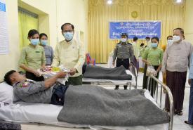 ဦးစွာ ရခိုင်ပြည်နယ်ဝန်ကြီးချုပ်နှင့် အဖွဲ့ဝင်များသည် သွေးလှူဒါန်းကြမည့်သူများအား ခုတင်(၅၀၀)ဆံ့ အထွေထွေရောဂါကု ဆေးရုံကြီးမှ ကျန်းမာရေး ဝန်ထမ်းများက ကိုယ်အလေးချိန် တိုင်းတာခြင်း၊ သွေးပေါင်ချိန် တိုင်းတာခြင်း၊ သွေးအမျိုးအစားခွဲခြင်းနှင့် သွေးလှူဒါန်းရန်လိုအပ်သည့် ကျန်းမာရေးစစ်ဆေးခြင်းများ ဆောင်ရွက်နေမှုများကို လှည့်လည်ကြည့်ရှုကာ စုပေါင်းသွေးလှူဒါန်းနေမှုကို ကြည့်ရှုအားပေးပြီး သွေးလှူဒါန်းကြသူများအား အာဟာဖြည့်စွက်စာများ ထောက်ပံ့ပေးအပ်သည်။ ထို့နောက် ခုတင်(၅၀၀)ဆံ့ အထွေထွေရောဂါကု ဆေးရုံကြီးမှ ကျန်းမာရေး ဝန်ထမ်းများအတွက် ထောက်ပံ့ငွေများကို ပေးအပ်သည်။ သွေးလှူဒါန်းပွဲတွင် စစ်တွေတပ်နယ်မှ တပ်မတော်သားများ၊ ရဲတပ်ဖွဲ့ဝင်များ၊ ဌာနအသီးသီးမှ ဝန်ထမ်းများ၊ ဆရာ ဆရာမများနှင့် ကျောင်းသား ကျောင်းသူ စုစုပေါင်း ၁၇၈ ဦးတို့က သွေးအမျိုးအစားမျိုးစုံ ၁၇၈ လုံးကို စုပေါင်း လှူဒါန်းခဲ့ကြခြင်းဖြစ်ကြောင်း သိရသည်။