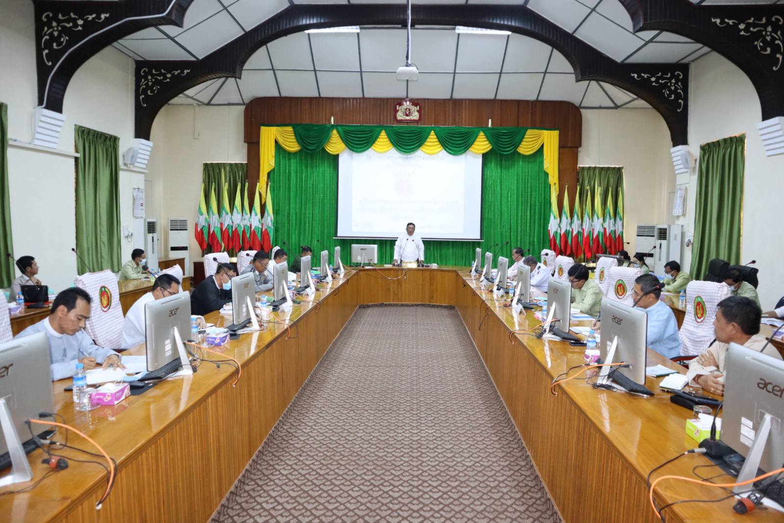 အသေးစား၊ အငယ်စားနှင့် အလတ်စား စီးပွားရေး လုပ်ငန်းများ ဖွံ့ဖြိုးတိုးတက်ရေး အေဂျင်စီ (၁/၂၀၂၂) ကြိမ်မြောက် အစည်းအဝေးကို ယနေ့ နံနက်ပိုင်းက မွန်ပြည်နယ်အစိုးရ အဖွဲ့ရုံး အောင်ဆန်းခန်းမ၌ ကျင်းပရာ ပြည်နယ်ဝန်ကြီးချုပ် ဦးဇော်လင်းထွန်း၊ ပြည်နယ်ဝန်ကြီးများနှင့် ဌာနဆိုင်ရာ တာဝန်ရှိသူများ တက်ရောက်ကြသည်။