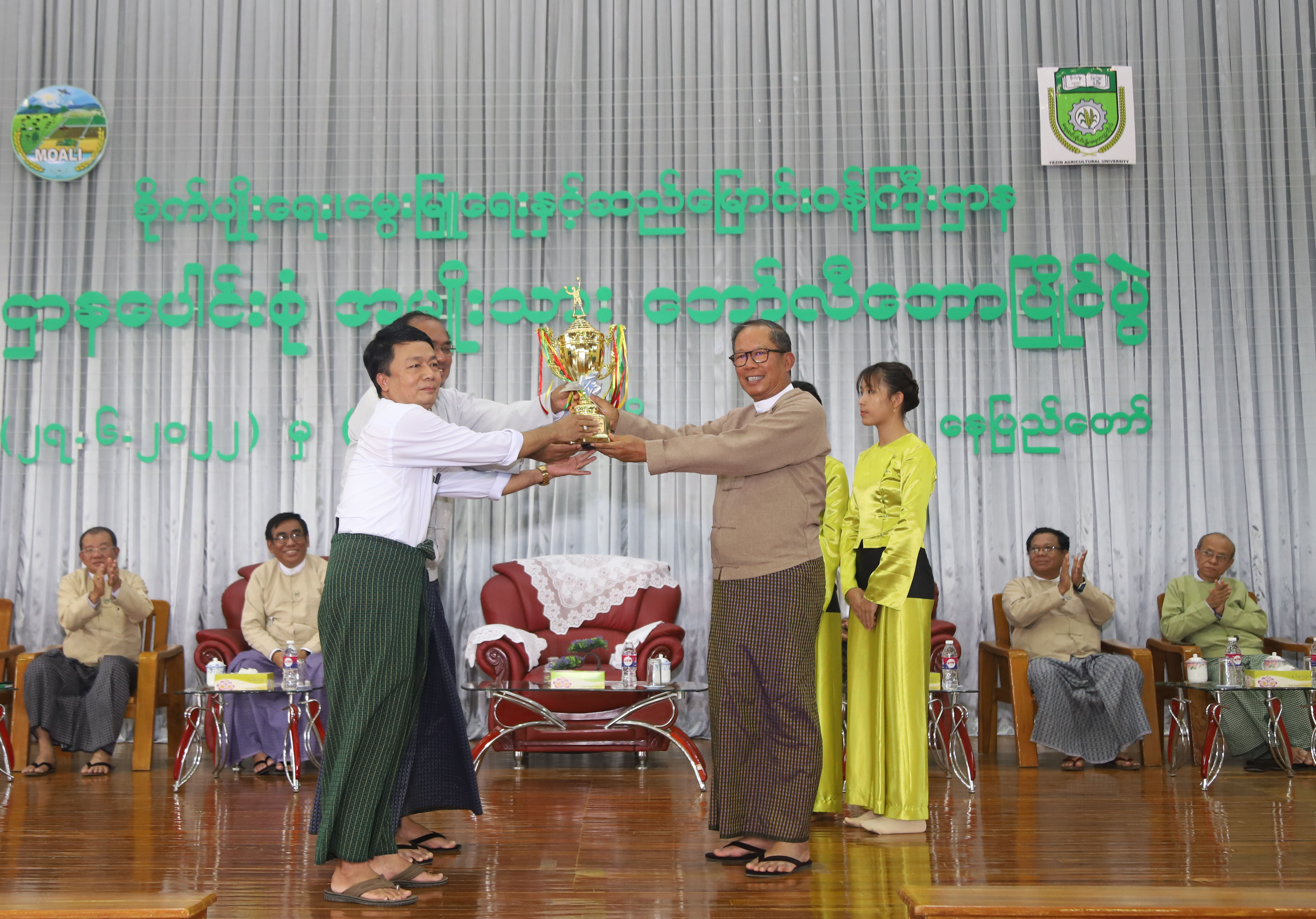 ထို့နောက် ဆုချီးမြှင့်ပွဲကို ဆက်လက်ကျင်းပရာ ပြည်ထောင်စုဝန်ကြီးက တံခွန်စိုက်ဆုရရှိသည့် စက်မှုလယ်ယာ ဦးစီးဌာနကိုယ်စားပြု ဘောလီဘောအသင်း ကိုလည်းကောင်း၊ အမြဲတမ်း အတွင်းဝန် ဦးကျော်မင်းဦး က ဒုတိယဆုရ စိုက်ပျိုးရေးသုတေသနဦးစီးဌာန ကိုယ်စားပြု ဘောလီဘောအသင်းကိုလည်းကောင်း၊ ကျန်ဆုများကို ဌာနဆိုင်ရာ တာဝန်ရှိသူများက လည်းကောင်း ပေးအပ်ချီးမြှင့်ကြသည်။
