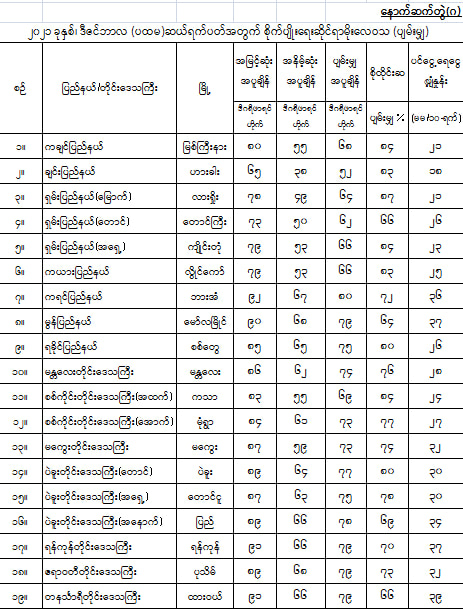 မိုးရွာသွန်းမှုအခြေအနေ--၂၀၂၁ ခုနှစ်၊ နိုဝင်ဘာလ(တတိယ)ဆယ်ရက်ပတ်အတွင်း မိုးရွာသွန်းမှု အခြေအနေများမှာ- ရန်ကုန်တိုင်းဒေသကြီးတွင် နိုဝင်ဘာလ(တတိယ)ဆယ်ရက်ပတ်၏ ပျမ်းမျှ မိုးရေချိန်ခန့်သာရှိခဲ့ပြီး ဧရာဝတီတိုင်းဒေသကြီး၊ ရှမ်းပြည်နယ်(အရှေ့ပိုင်း)နှင့် ကရင်ပြည်နယ်တို့တွင် နိုဝင်ဘာလ(တတိယ)ဆယ်ရက်ပတ်၏ ပျမ်းမျှမိုးရေချိန်တို့ထက်ပိုခဲ့ကာ၊ စစ်ကိုင်းတိုင်းဒေသကြီး၊ မန္တလေးတိုင်းဒေသကြီး၊ မကွေးတိုင်းဒေသကြီး၊ ပဲခူးတိုင်းဒေသကြီး၊ တနင်္သာရီတိုင်းဒေသကြီး၊ ကချင်ပြည်နယ်၊ ချင်းပြည်နယ်၊ ရှမ်းပြည်နယ်(မြောက်ပိုင်းနှင့်တောင်ပိုင်း)၊ ရခိုင်ပြည်နယ်၊ ကယား ပြည်နယ်နှင့် မွန်ပြည်နယ်တို့တွင် နိုဝင်ဘာလ(တတိယ)ဆယ်ရက်ပတ်၏ ပျမ်းမျှမိုးရေချိန်တို့အောက် လျော့နည်းခဲ့သည်။