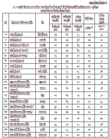 မိုးရွာရက်များအနေဖြင့် တနင်္သာရီတိုင်းဒေသကြီး(မြိတ်မြို့)တွင် (၆)ရက်၊ ဧရာဝတီတိုင်းဒေသကြီး (ဟင်္သာတမြို့)၊ ရှမ်းပြည်နယ်(တောင်ပိုင်း)နှင့် မွန်ပြည်နယ်(ရေးမြို့)တို့တွင် (၄)ရက်စီ၊ ပဲခူးတိုင်း ဒေသကြီး (အရှေ့ပိုင်း)၊ ပဲခူးတိုင်းဒေသကြီး(အနောက်ပိုင်း)(သာယာဝတီမြို့)နှင့် ကယားပြည်နယ် တို့တွင် (၃)ရက်စီ၊ စစ်ကိုင်းတိုင်းဒေသကြီးအောက်ပိုင်း(ကန့်ဘလူမြို့)၊ မန္တလေးတိုင်းဒေသကြီး၊ ပဲခူးတိုင်းဒေသကြီး(တောင်ပိုင်း)၊ ရန်ကုန် တိုင်းဒေသကြီး၊ ရှမ်းပြည်နယ်(အရှေ့ပိုင်း)၊ ရခိုင်ပြည်နယ် (ဂွမြို့)နှင့် ကရင်ပြည်နယ်တို့တွင် (၂)ရက်စီ၊ စစ်ကိုင်း တိုင်းဒေသကြီးအထက်ပိုင်း (ကလေးဝမြို့နှင့် မင်းကင်းမြို့)၊ မကွေးတိုင်းဒေသကြီး(ဆိပ်ဖြူမြို့နှင့်ပခုက္ကူမြို့)၊ ကချင်ပြည်နယ် (ပူတာအိုမြို့နှင့် ဗန်းမော်မြို့)နှင့် ရှမ်းပြည်နယ်(မြောက်ပိုင်း)တို့တွင် (၁)ရက်စီနှင့် ချင်းပြည်နယ်တွင် မိုးအနည်းငယ် ရွာသွန်းခဲ့ပါသည်။
