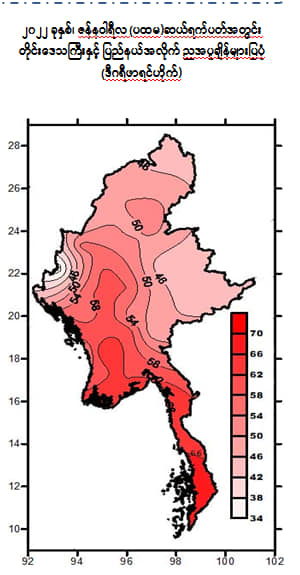 (ဖြစ်နိုင်စွမ်းပင်ငွေ့ရေငွေ့ပျံနှုန်းအား HARGREAVES METHOD ဖြင့် တွက်ချက်ထားပါသည်။)