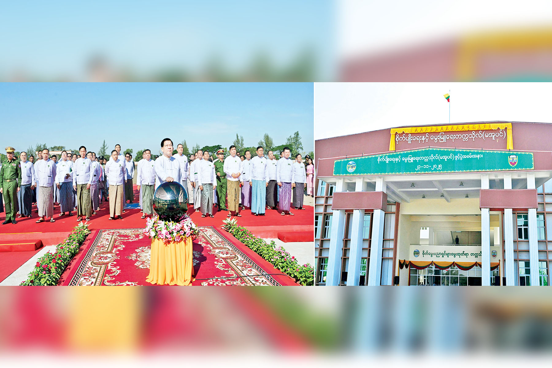 စိုက်ပျိုးရေး၊ မွေးမြူရေးနှင့် ဆည်မြောင်းဝန်ကြီးဌာန စိုက်ပျိုးရေးနှင့် မွေးမြူရေးတက္ကသိုလ် (မအူပင်) ဖွင့်ပွဲအခမ်းအနားအား ယနေ့နံနက်ပိုင်းတွင် ကျင်းပပြုလုပ်ရာ ပြည်ထောင်စုသမ္မတမြန်မာနိုင်ငံတော်ယာယီသမ္မတ နိုင်ငံတော်လုံခြုံရေးနှင့်အေးချမ်းသာယာရေးကော်မရှင်ဥက္ကဋ္ဌ ဗိုလ်ချုပ်မှူးကြီး မင်းအောင်လှိုင် တက်ရောက်ဖွင့်လှစ်ပေးသည်။