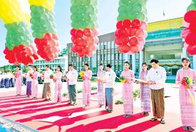ယင်းနောက် အခမ်းအနားကို စတင်ကျင်းပပြုလုပ်ရာ ကော်မရှင်အတွင်းရေးမှူး တွဲဖက်အမှုဆောင်ချုပ် ဗိုလ်ချုပ်ကြီး ရဲဝင်းဦး၊ ကော်မရှင်အဖွဲ့ဝင် နယ်စပ်ရေးရာဝန်ကြီးဌာန ပြည်ထောင်စုဝန်ကြီး ဒုတိယဗိုလ်ချုပ်ကြီး ရာပြည့်၊ စိုက်ပျိုးရေး၊ မွေးမြူရေးနှင့် ဆည်မြောင်းဝန်ကြီးဌာန ပြည်ထောင်စုဝန်ကြီး ဦးမင်းနောင်၊ သိပ္ပံနှင့်နည်းပညာဝန်ကြီးဌာန ပြည်ထောင်စုဝန်ကြီး ဒေါက်တာမျိုးသိန်းကျော်နှင့် ဧရာဝတီတိုင်းဒေသကြီးဝန်ကြီးချုပ်တို့က အခမ်းအနားအား ဖဲကြိုးဖြတ်ဖွင့်လှစ်ပေးကြသည်။