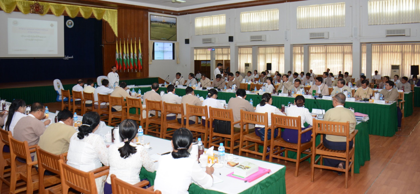 ထို့နောက် တိုင်းဒေသကြီး/ပြည်နယ် ဦးစီးမှူးများက ဒေသအလိုက် ဆောင်ရွက်ခဲ့မှုများနှင့် ဘဏ္ဍာနှစ်အလိုက် ဆက်လက်ဆောင်ရွက်မည့် လုပ်ငန်းစဉ်များအား တင်ပြကြပြီး စိုက်ပျိုးရေးဦးစီးဌာန ညွှန်ကြားရေးမှူးချုပ် ဒေါက်တာရဲတင့်ထွန်းက ဖြည့်စွက် ရှင်းလင်းတင်ပြသည်။