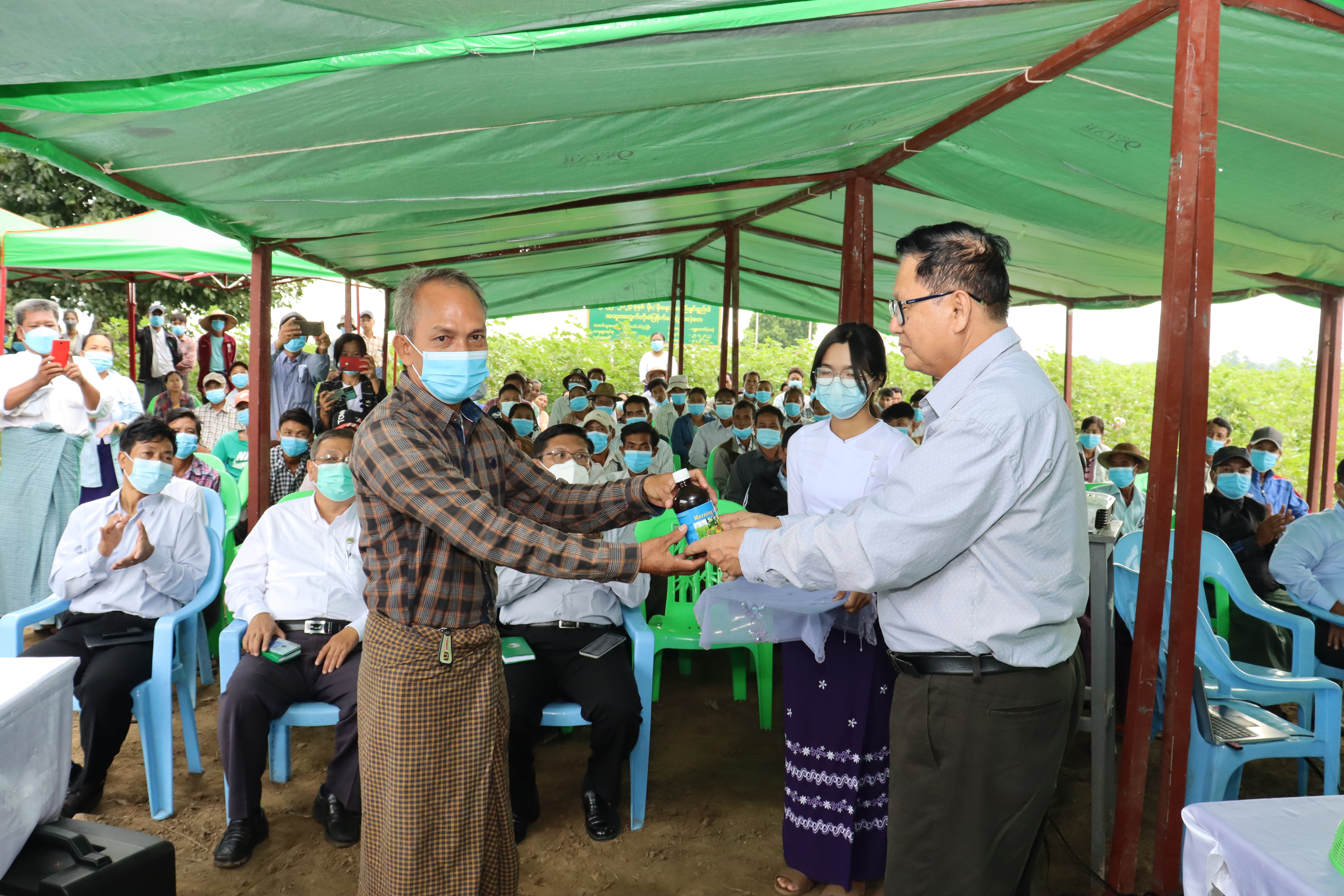 ၂၀၂၂-၂၀၂၃ခုနှစ်၊ မိုးနှောင်းချည်မျှင်ရှည်ဝါ အထူးအထွက်တိုးစံပြကွက် ကွင်းသရုပ်ပြပွဲနှင့် အာဟာရပြည့် ရွက်ဖျန်းအားဆေး ထောက်ပံ့ပေးအပ်ပွဲ အခမ်းအနားကို ယနေ့တွင် နေပြည်တော်၊ တပ်ကုန်းမြို့နယ်၊ ရှားတောကျေးရွာအုပ်စု၊ ‌ဂွေပင်စံပြကျေးရွာ၌ကျင်းပသည်။