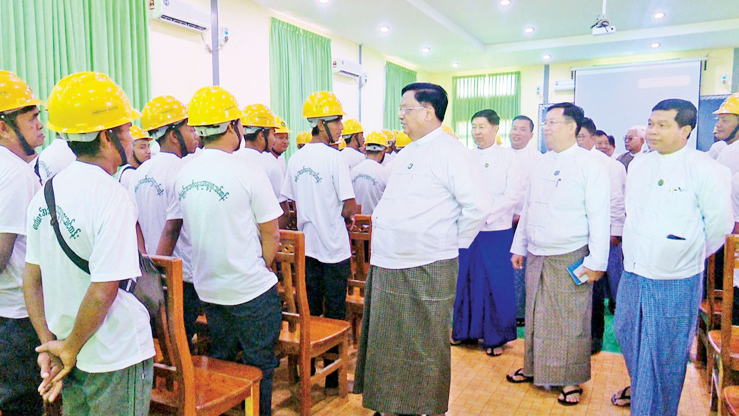 ယင်းနောက် ပြည်ထောင်စုဝန်ကြီးက အခြေခံစက်ပြင်ဘာသာရပ်၊ အခြေခံလျှပ်စစ်ဘာသာရပ်၊ အခြေခံဂဟေဆက်ဘာသာရပ်တို့ကို တက်ရောက်သင်ကြားမည့် သင်တန်းသား သင်တန်းသူများကို ရင်းရင်းနှီးနှီး တွေ့ဆုံအားပေးစကားပြောကြားပြီး သင်ထောက်ကူပစ္စည်းများကို ကြည့်ရှုစစ်ဆေးသည်။