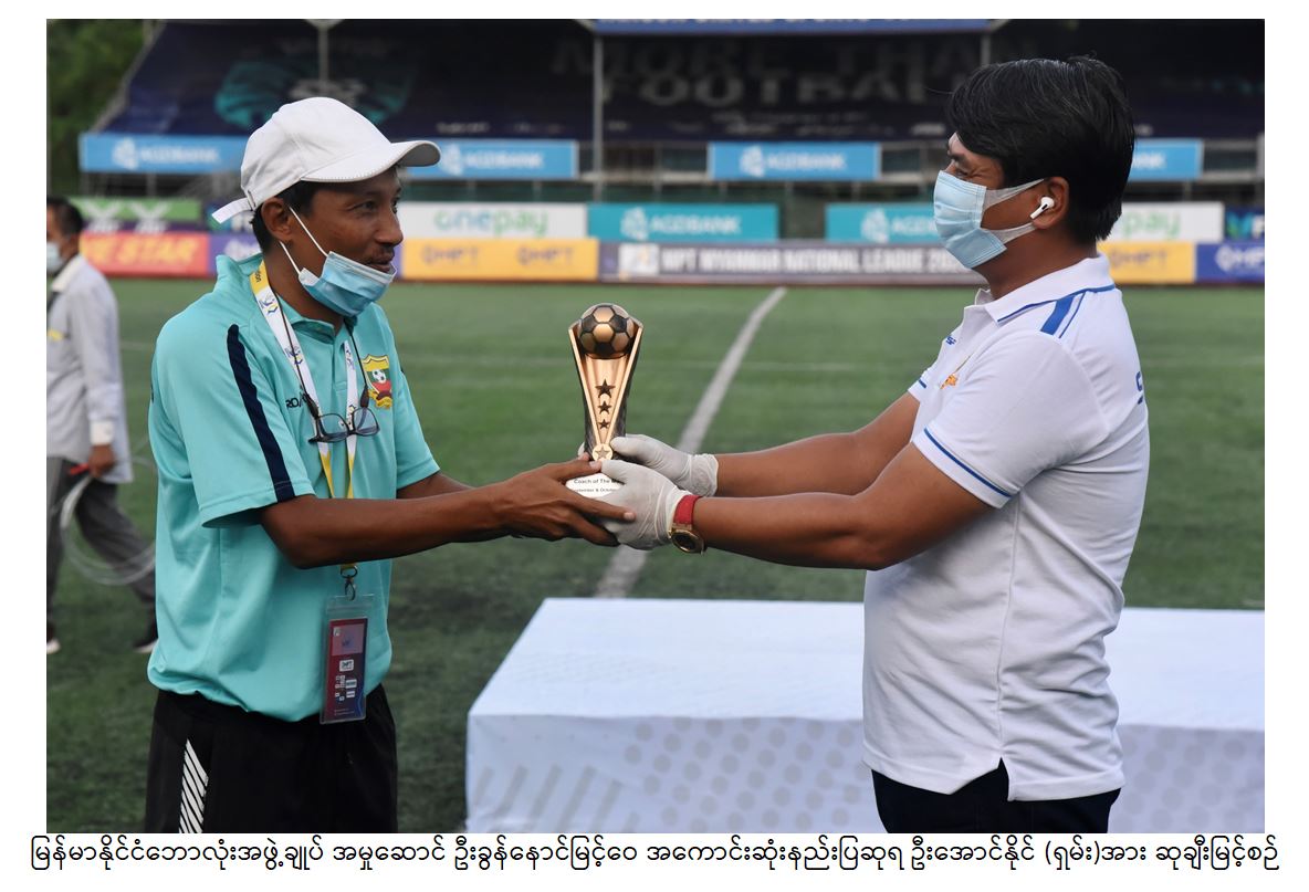 ယင်းဆုများကို အောက်တိုဘာ ၁ ရက်က ကျင်းပသည့် ရှမ်းယူနိုက်တက်နှင့် ရတနာပုံပွဲအပြီးတွင် ချီးမြင့်ခဲ့ပြီး အကောင်းဆုံးနည်းပြဆုရ ဦးအောင်နိုင် (ရှမ်းယူနိုက်တက်) ကို ဆုတံဆိပ်နှင့် ဆုကြေးကျပ်တစ်သိန်းခွဲ၊ အကောင်းဆုံးကစားသမားဆုရ မျိုးမင်းလတ်(ရှမ်းယူနိုက်တက်)ကို ဆုတံဆိပ်နှင့် ဆုကြေးကျပ်နှစ်သိန်းကို မြန်မာနိုင်ငံဘောလုံးအဖွဲ့ချုပ် အမှုဆောင် ဦးခွန်နောင်မြင့်ဝေနှင့် မြန်မာနေရှင်နယ်လိဂ် အမှုဆောင်အရာရှိချုပ် ဦးစိုးမိုးကျော်တို့က ပေးအပ်ချီးမြင့်ခဲ့သည်။