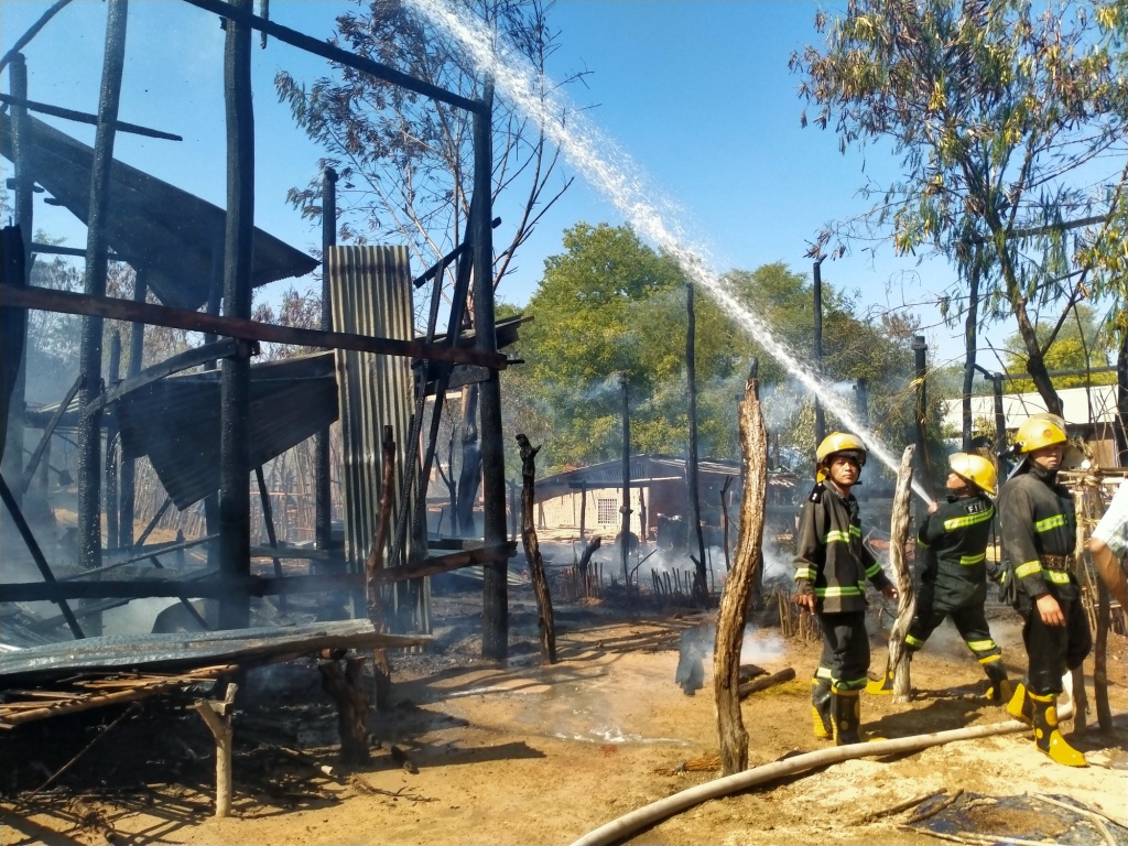မီးလောင်မှုဖြစ်ပွားရာသို့ စလင်းမြို့နယ် မီးသတ်ဦးမှူးရုံးမှ မီးသတ်တပ်ဖွဲ့ဝင်များ၊ အုပ်ချုပ်မှုယာဉ် ၁ စီး၊ မီးသတ်စက်ယာဉ် ၁ စီး၊ မီးငြှိမ်းသတ် ၁ စီး၊ မီးသတ်ရေသယ်ယာဉ် ၁ စီးနှင့် ဒေသခံပြည်သူများ စုပေါင်း၍ ဝိုင်းဝန်းငြှိမ်းသတ်ခဲ့ရာ မွန်းလွဲ ၁၂ နာရီ ၄၀ မိနစ်တွင် မီးငြှိမ်းသတ်နိုင်ခဲ့သည်။