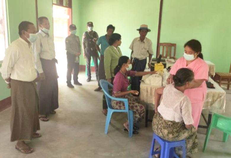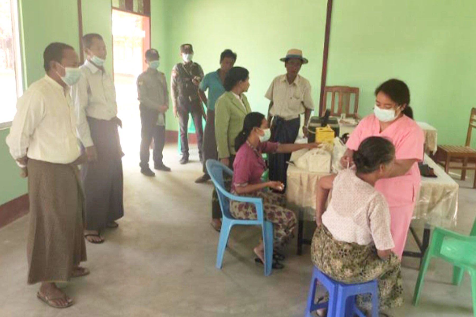 ဌာနဆိုင်ရာပူးပေါင်းအဖွဲ့က လာရောက်ထိုးနှံသည့် သက်ကြီးဘိုးဘွားများအား ကျန်းမာရေးစစ်ဆေးမှုများ ပြုလုပ်ခြင်း၊ စာရင်းအချက်အလက်များ ကောက်ယူခြင်း၊ ကိုယ်အပူချိန်တိုင်းတာခြင်း၊ ကာကွယ်ဆေးထိုးနှံပြီးချိန်တွင် ခေတ္တထိုင်၍ အနားယူစေခြင်း စသည့် ကျန်းမာရေးစောင့်ရှောက်မှုများကို ဆောင်ရွက်ပေးခဲ့ကြသည်။